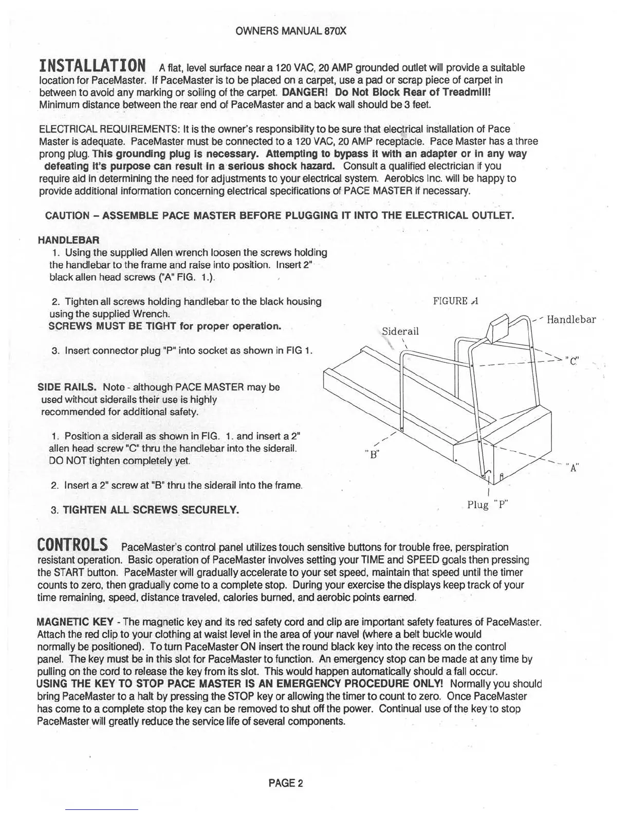 PaceMaster 870X - Installation Requirements; Controls and Operation; Control Panel and Buttons; Magnetic Safety Key System