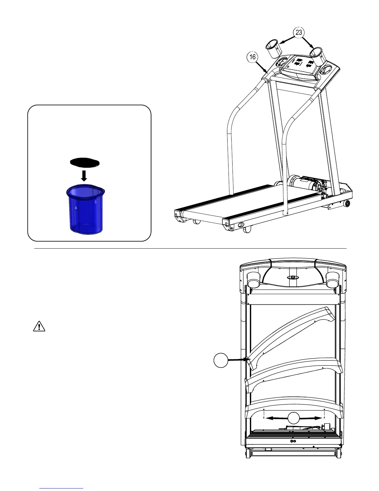 To install the motor cover, stand in front of the treadmill. Pick up the motor cover (24) so