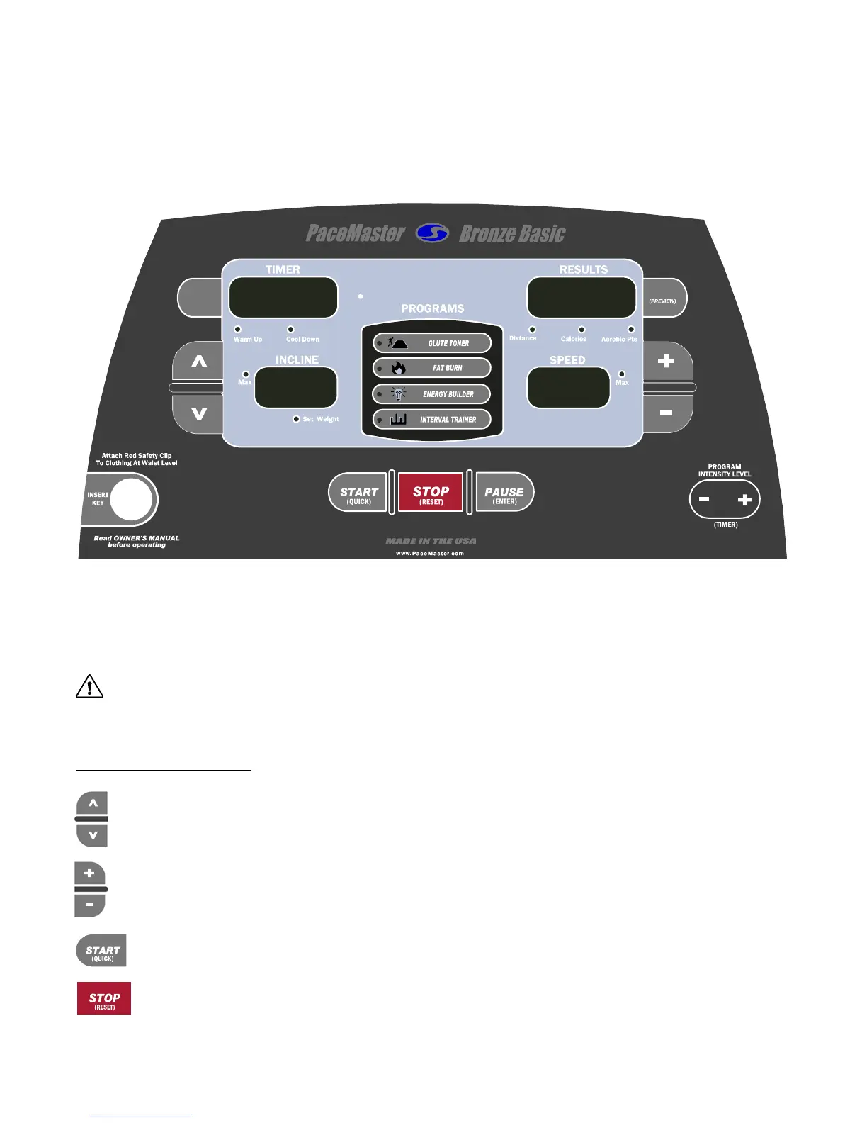 Although your PaceMaster has many advanced features to provide versatility in meeting exercise needs, basic operation is extremely