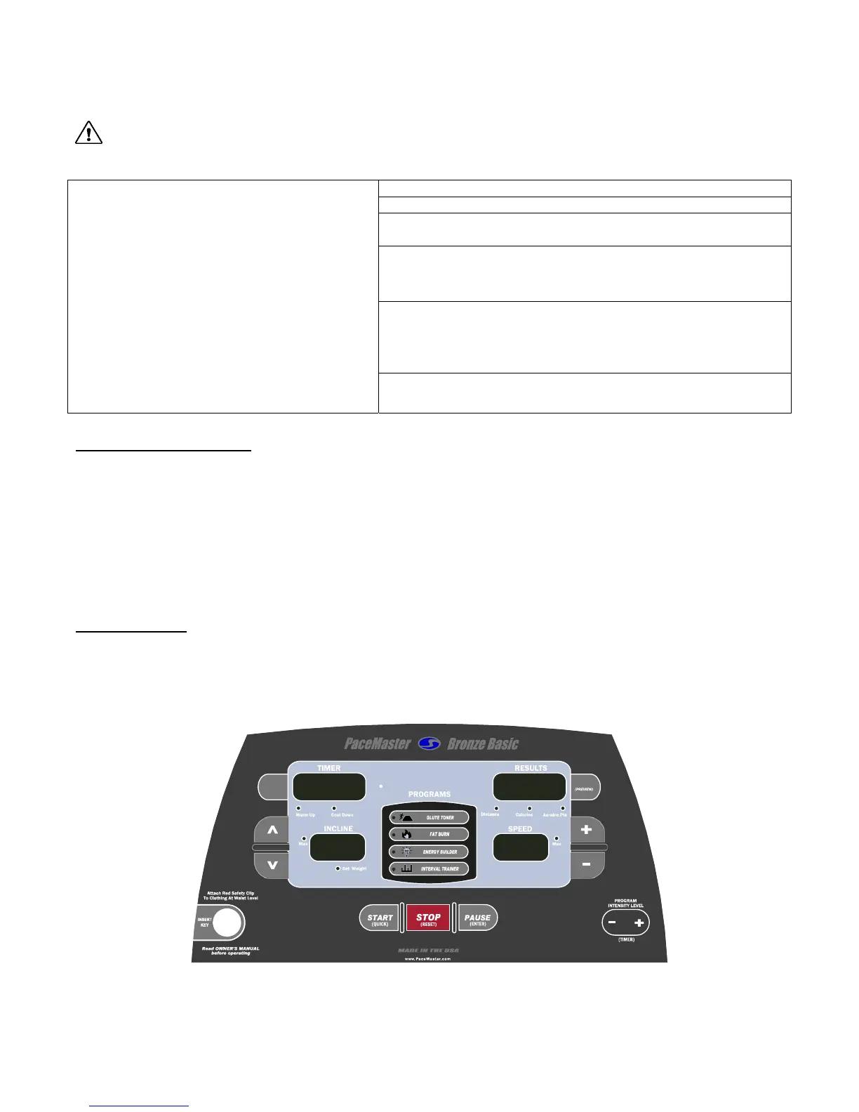 Your self-diagnostic PaceMaster treadmill has built in sensors that will determine the precise reason for a problem. If the onboard