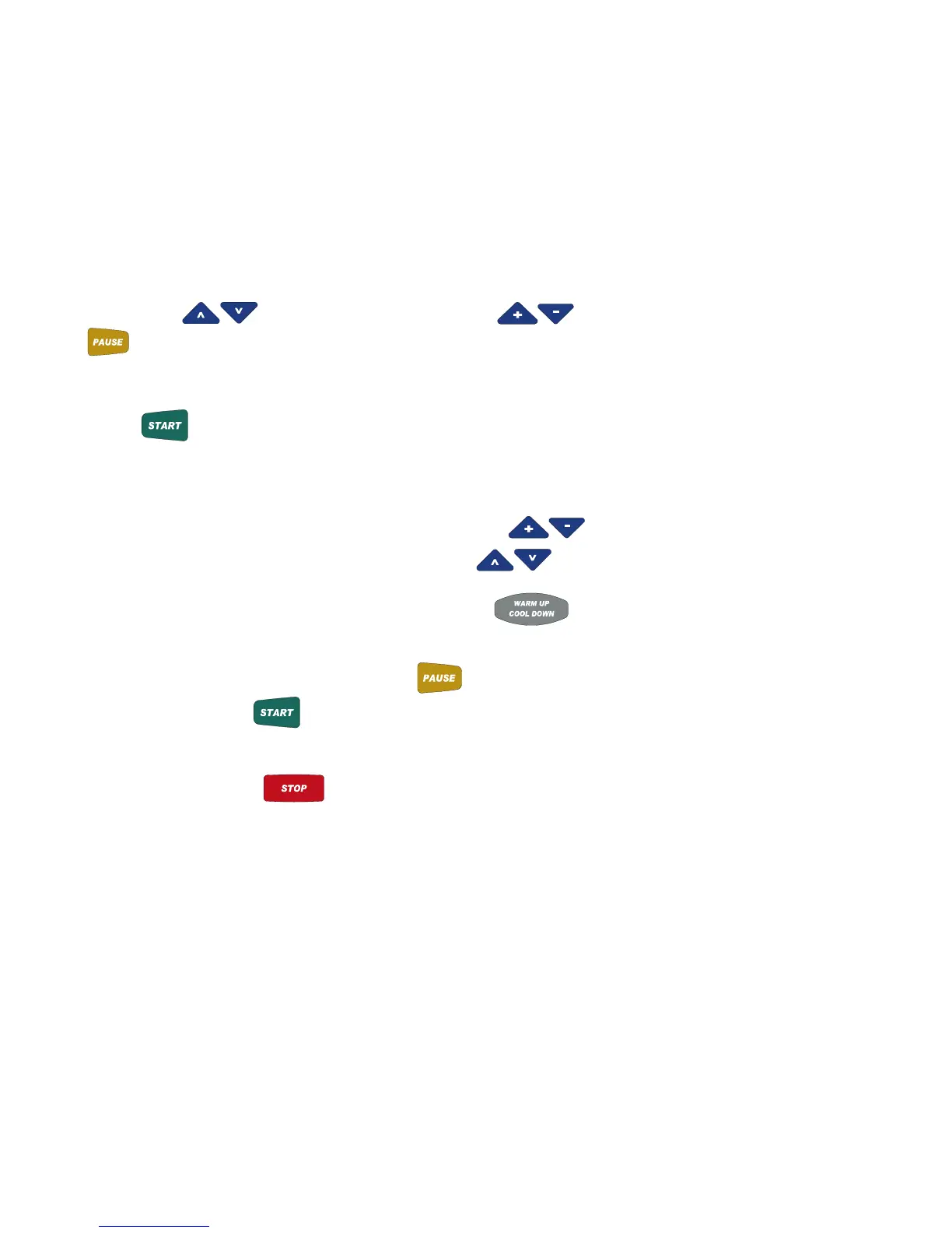 • Adjust the speed at any time during your workout by pressing the Speed buttons. Speed will adjust in 0.1 mph increments