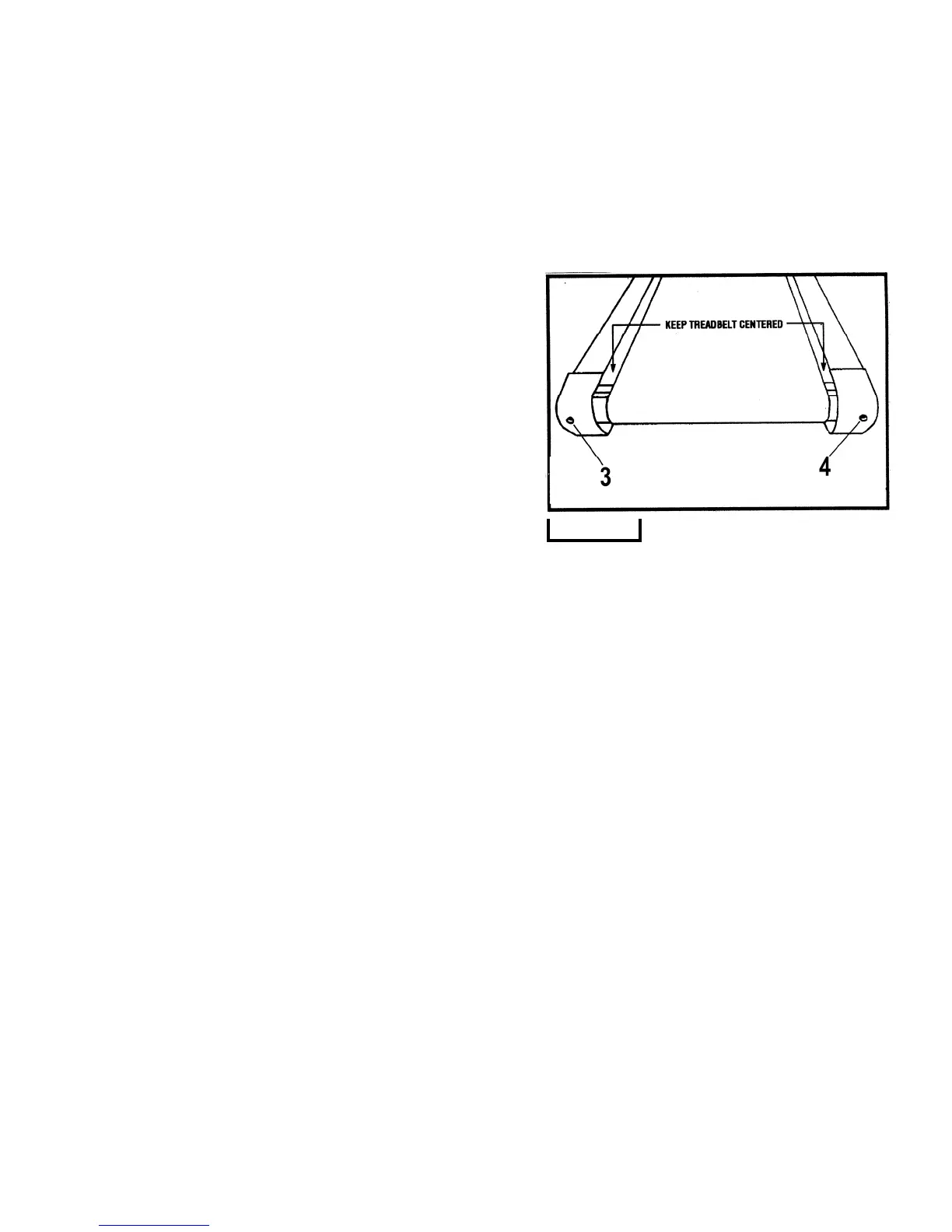 Locate the two tread belt adjustment screws (3) and (4) as shown.