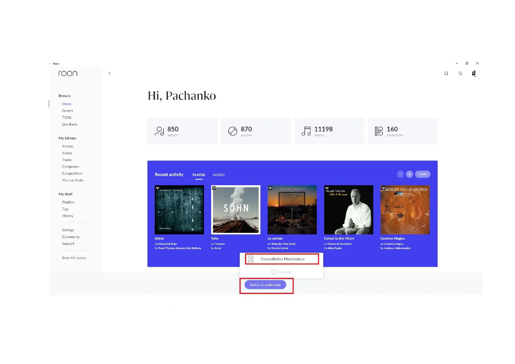 F. Now that your DAC is enabled, click on “Select an Audio Zone”.