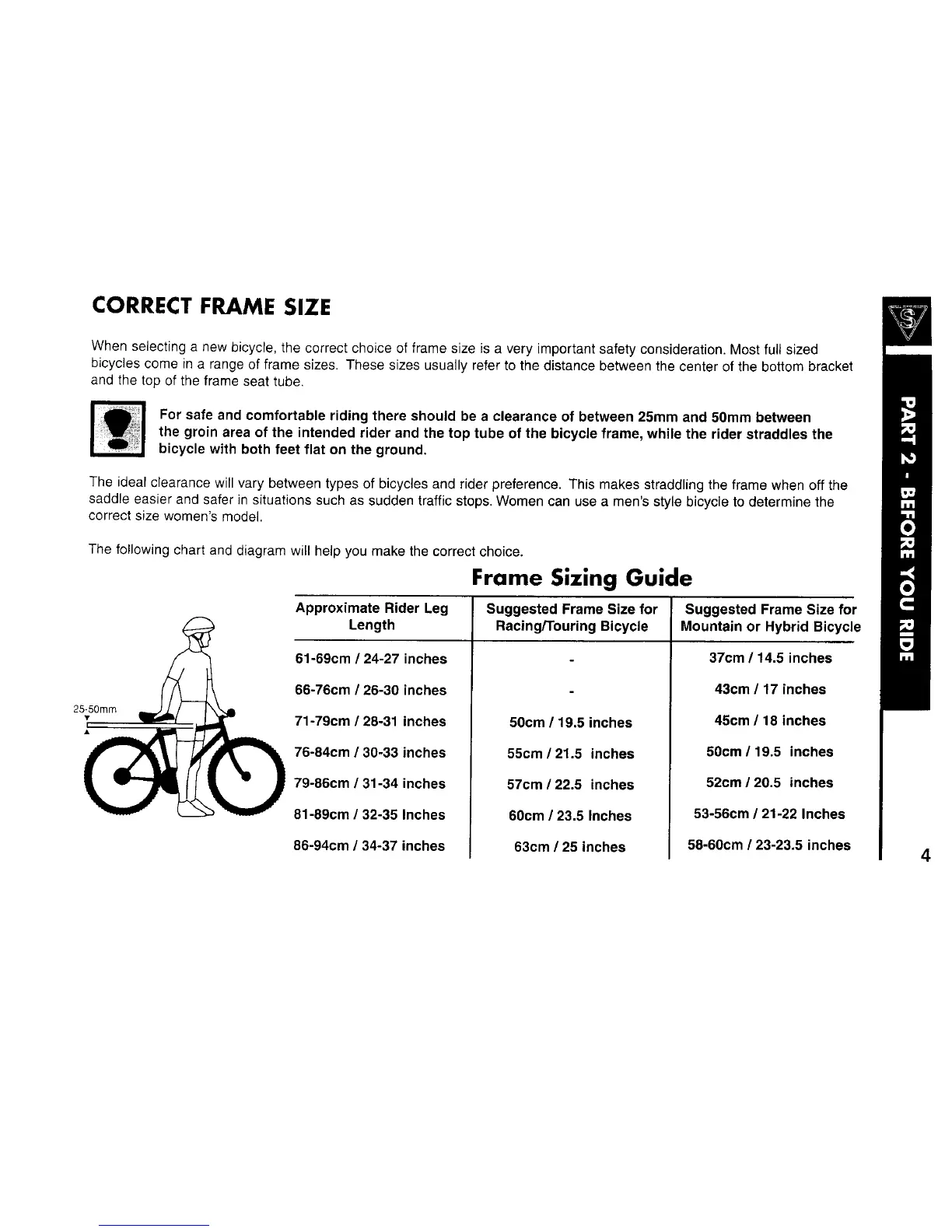 When selecting a new bicycle, the correct choice of frame size is a very important safety consideration. Most full sized