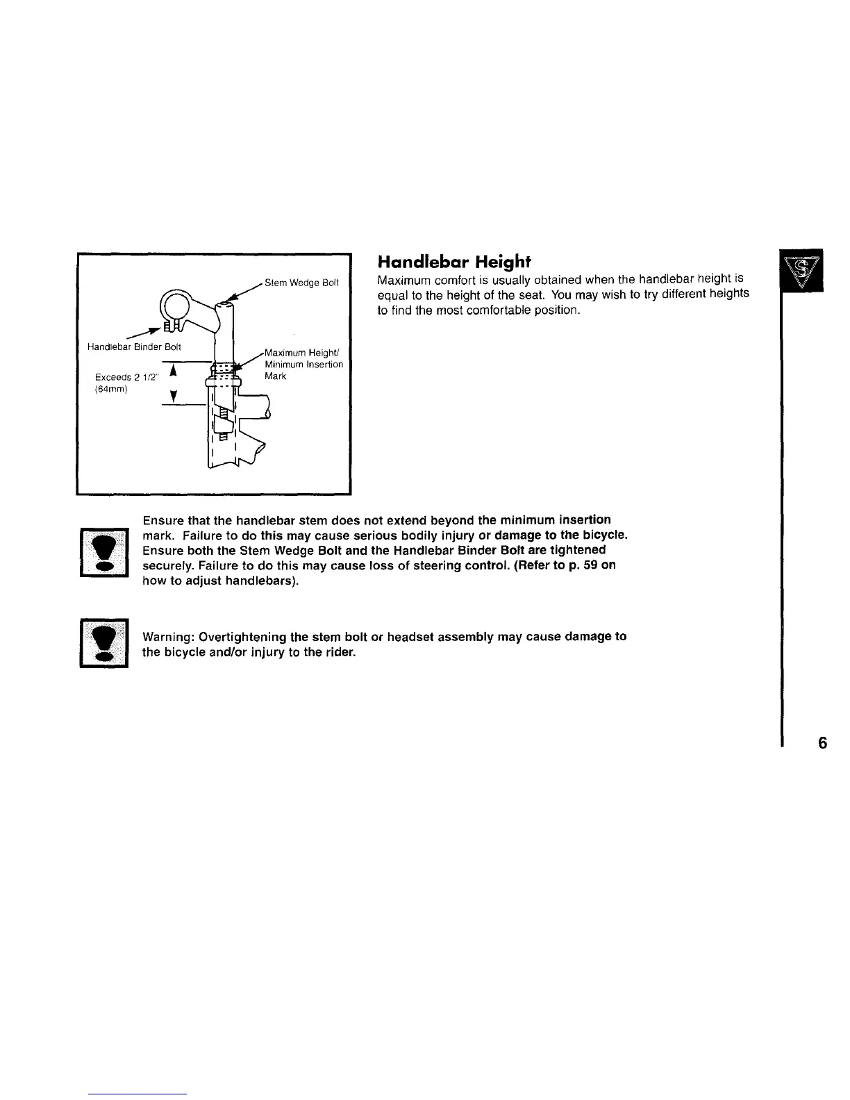 mark. Failure to do this may cause serious bodily injury or damage to the bicycle.