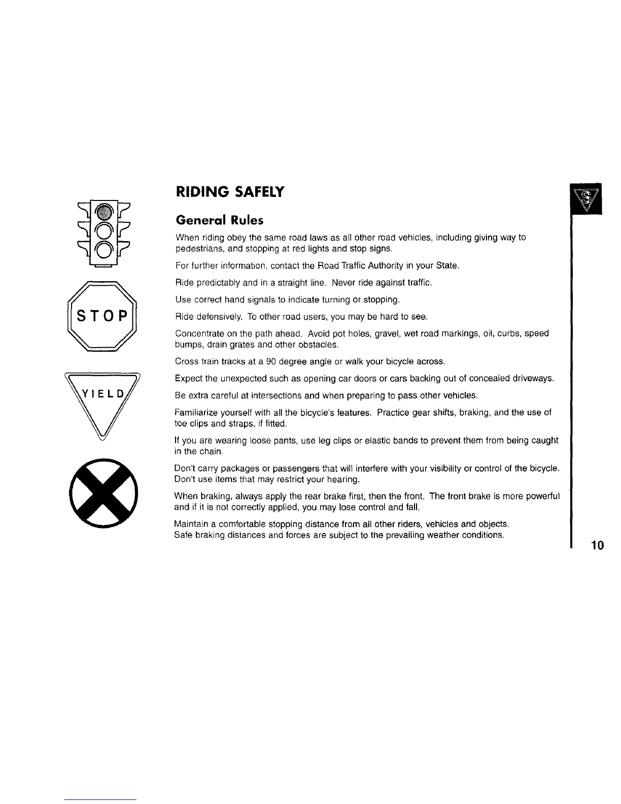 Don't carry packages or passengers that will interfere with your visibility or control of the bicycle.
