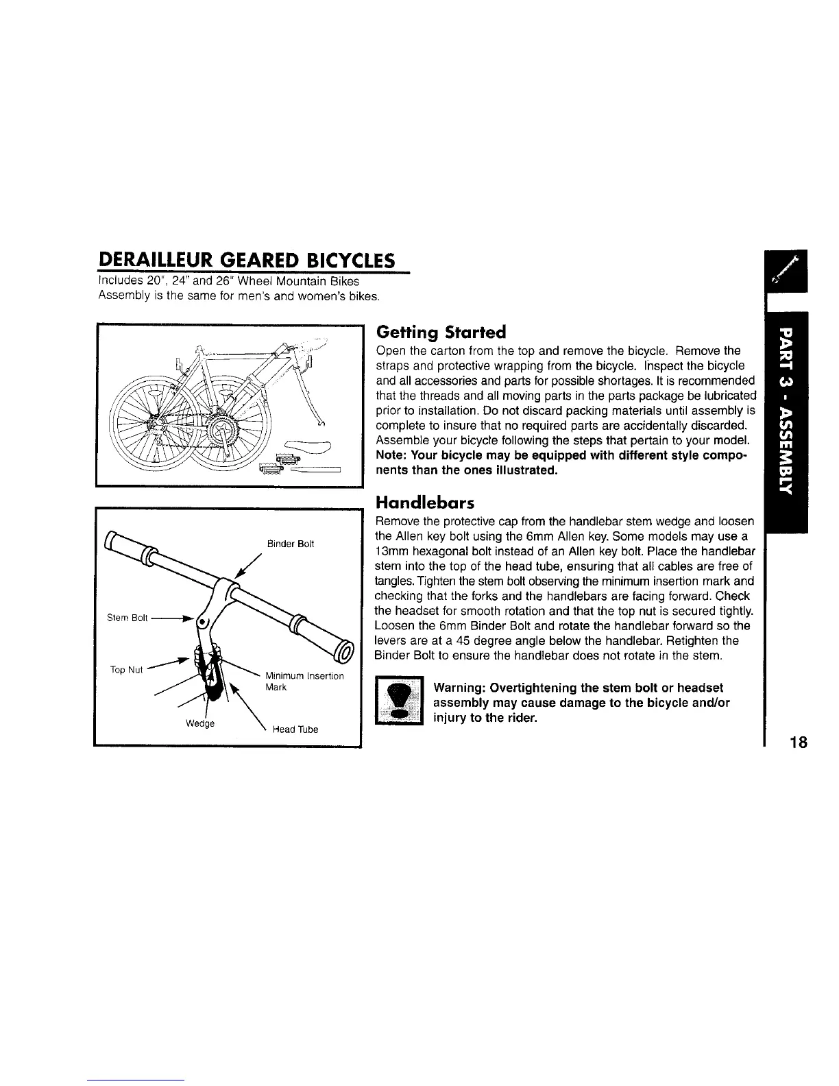 tangles. Tighten the stem bolt observing the minimum insertion mark and