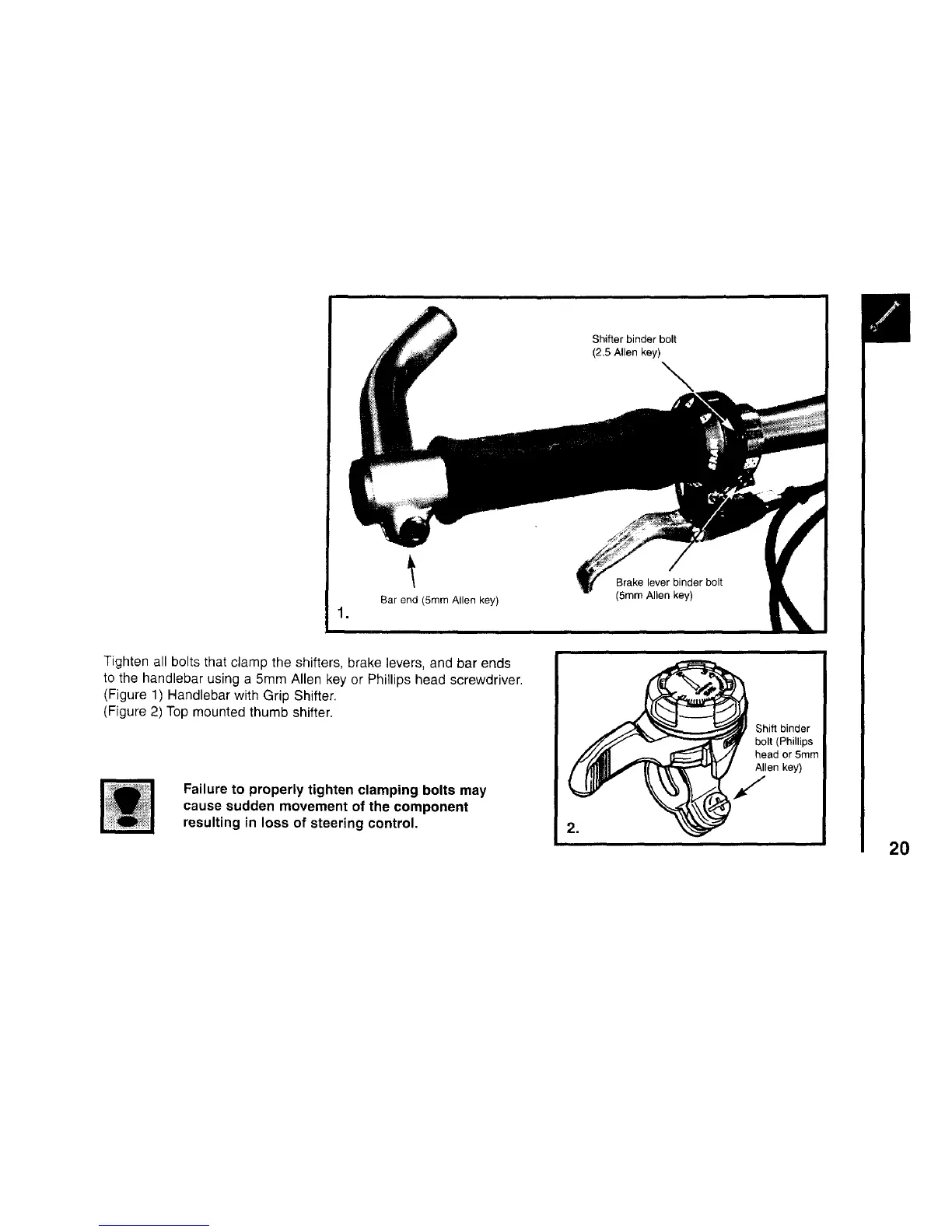 Tighten all bolts that clamp the shifters, brake levers, and bar ends