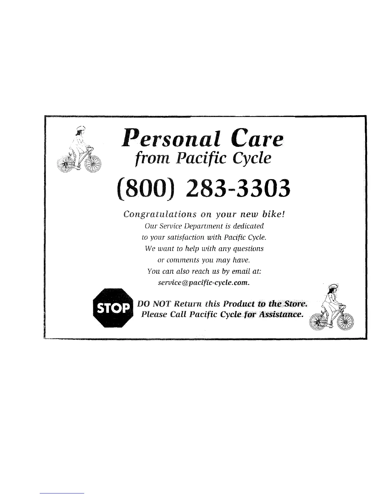 Please Call Pacific Cyc!e tbr AssNmrtce,