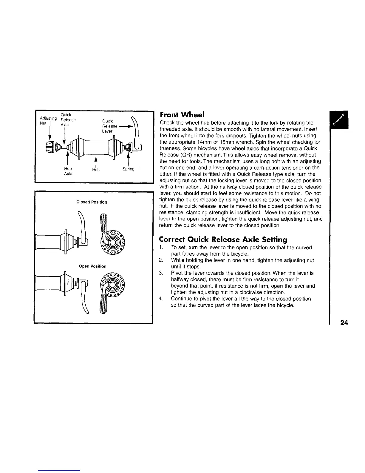 other. If the wheel is fitted with a Quick Release type axle, turn the