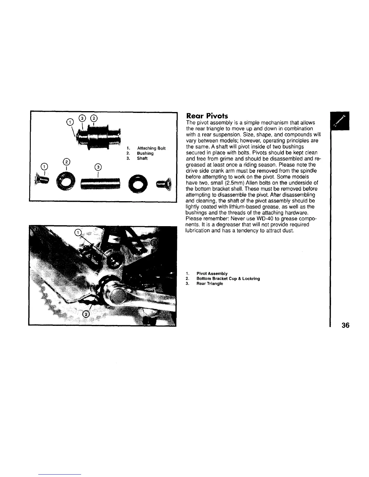 and cleaning, the shaft of the pivot assembly should be