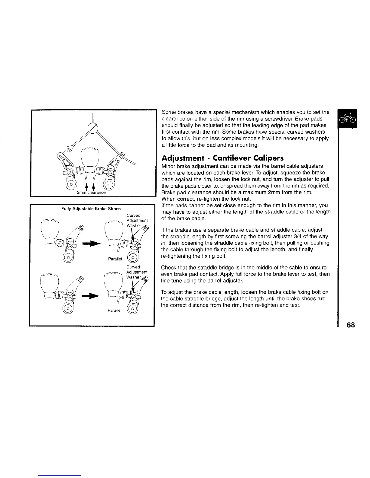 the brake pads closer to, or spread them away from the rim as required.