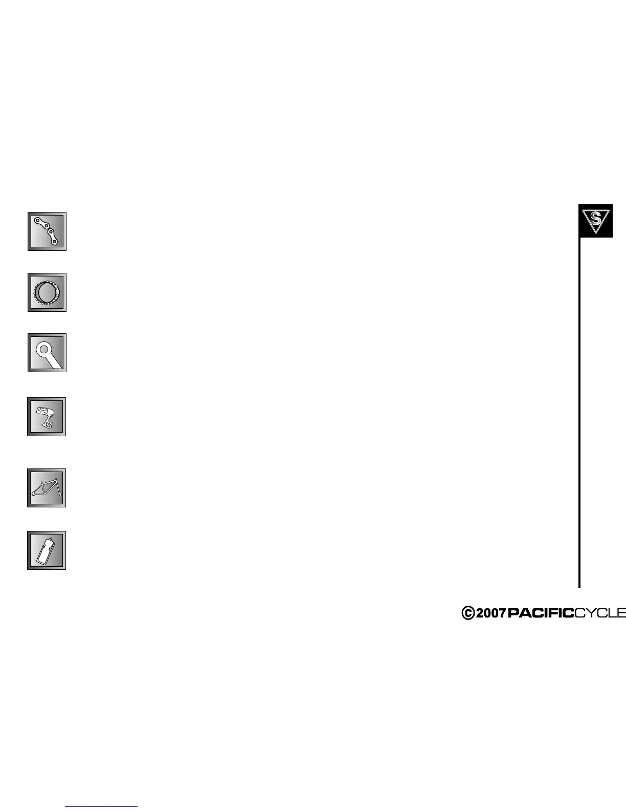 - Check headset, wheel bearings, pedal bearings and bottom bracket bearings.