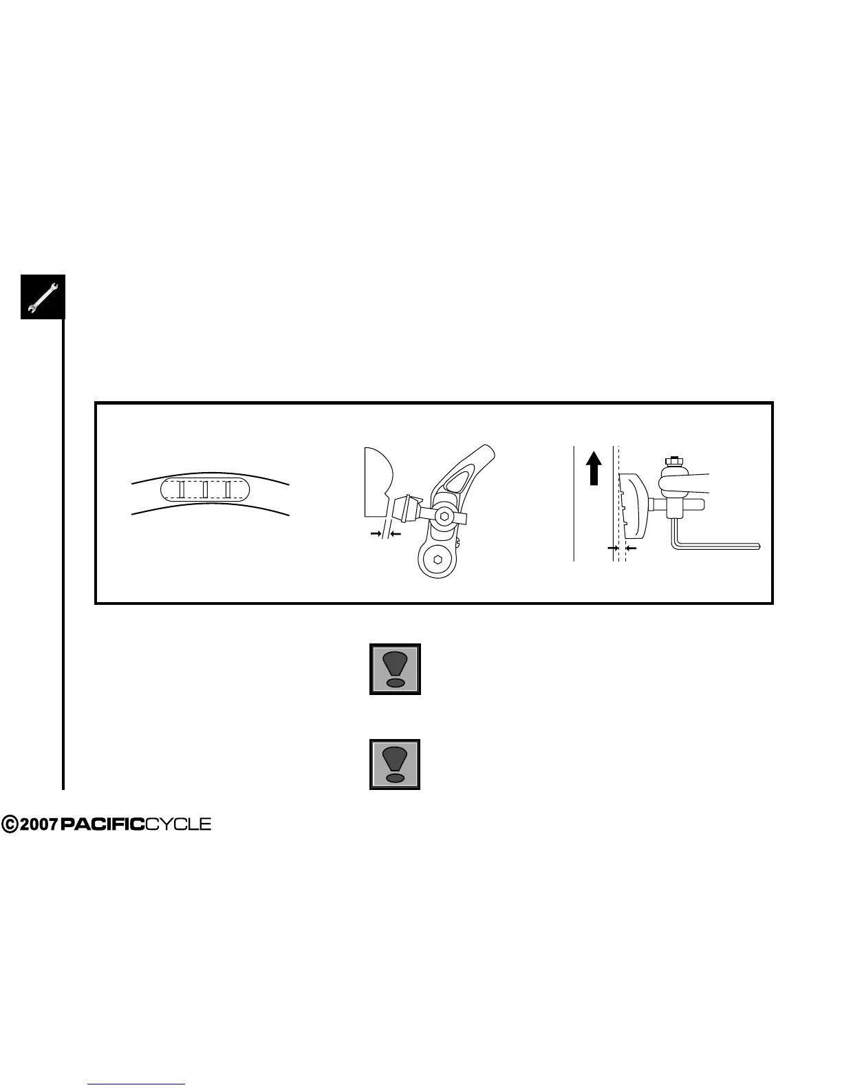 Brake pad aligned with the rim surface Pad and rim should be parallel.
