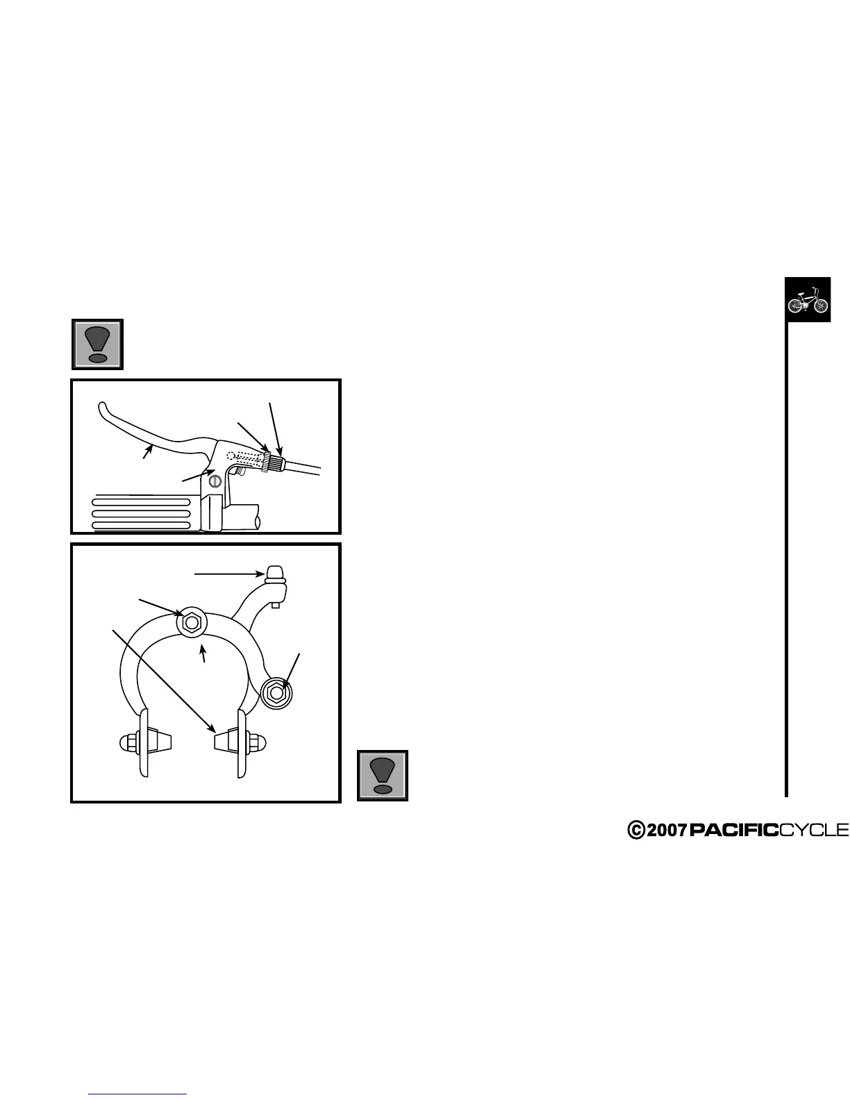 the rim. When correct, re-tighten the lock nut. If the pads cannot