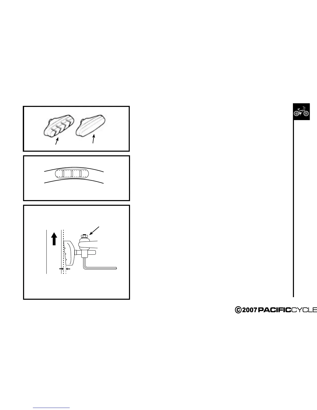 adjust. Move the brake pad along its mounting post to alter the dis-