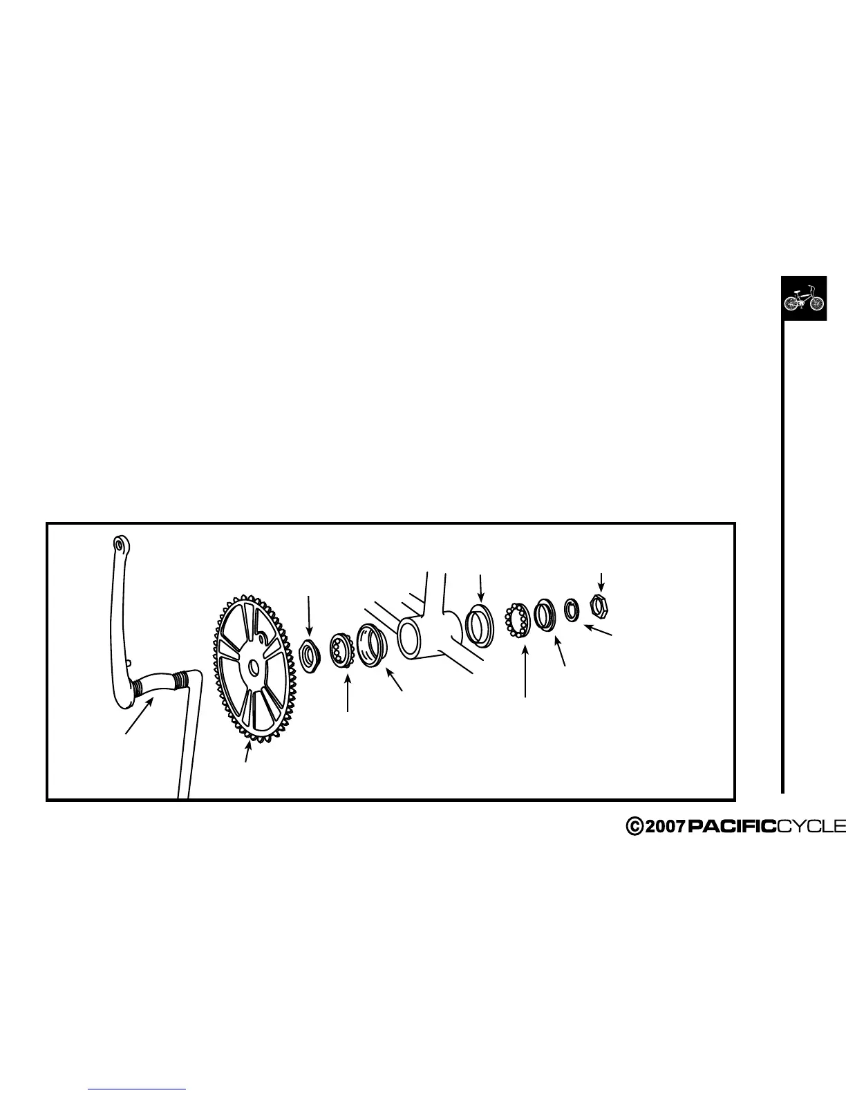 5. Remove the left ball retainer, slide the crank assembly out of the frame to the right, and remove the right ball retainer.