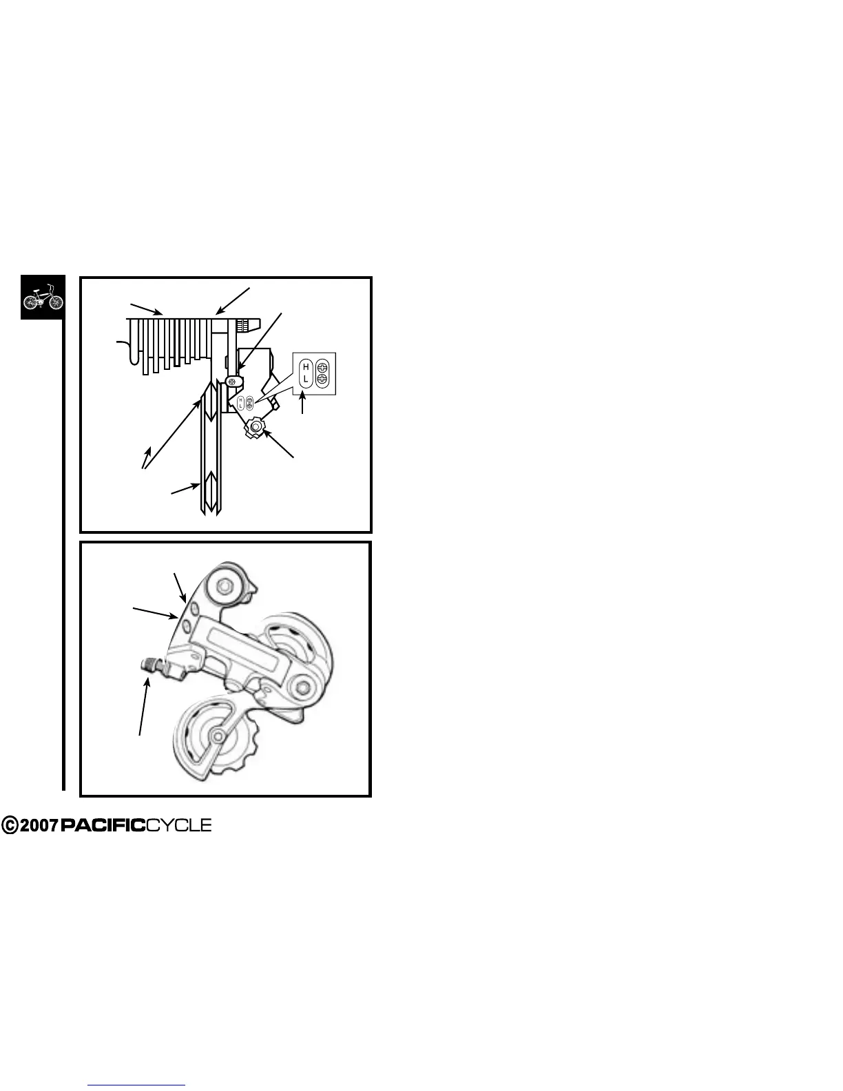 wheel of the bicycle, while the High limit screw determines how far the cage will