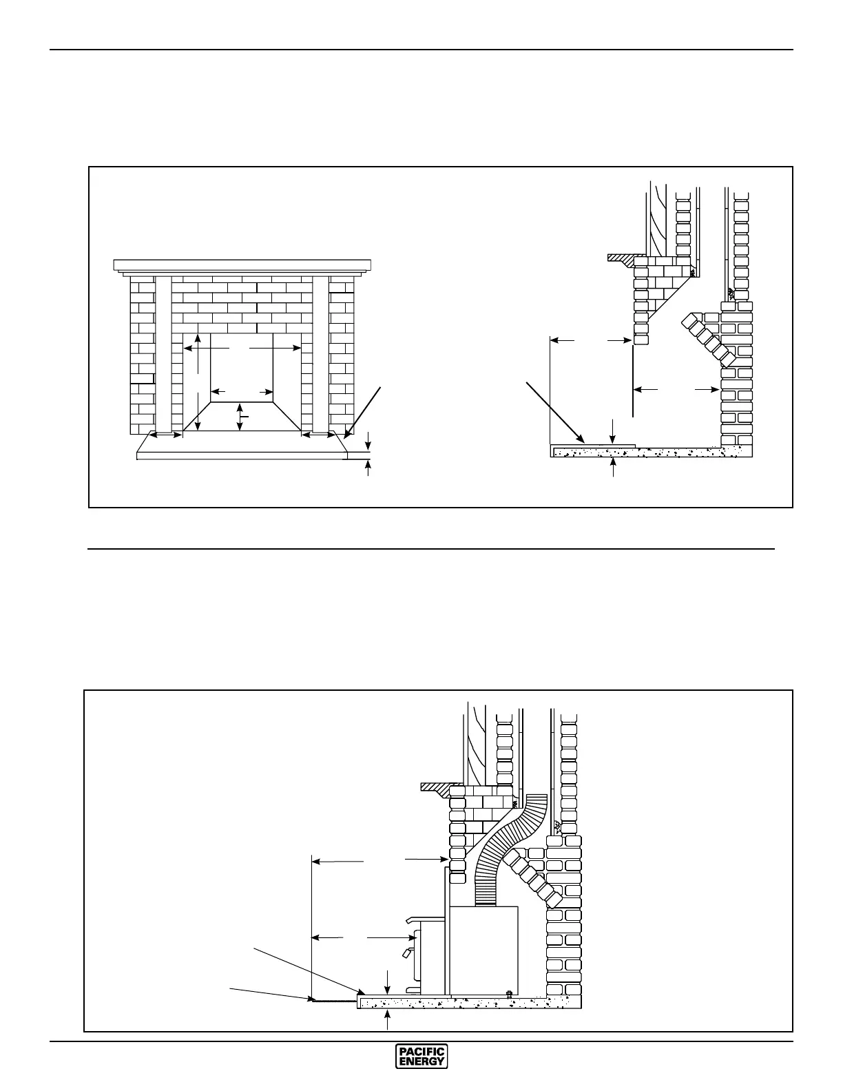 8” beyond each side of the existing replace opening. A non-combustible hearth that extends a minimum 23 1/2” in front