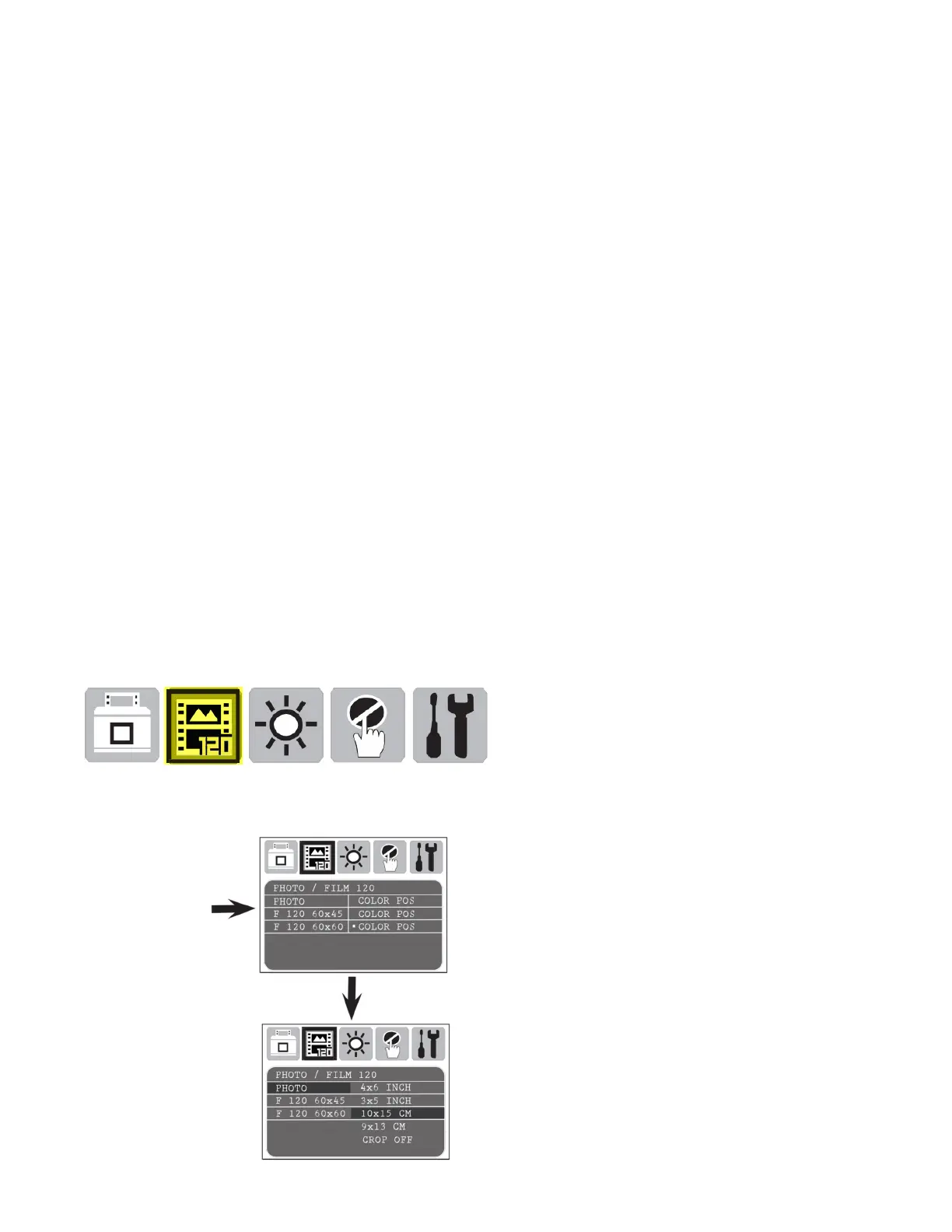 1. Slide the switch on the front of the scanner so that the words PHOTO/120 FILM are visible