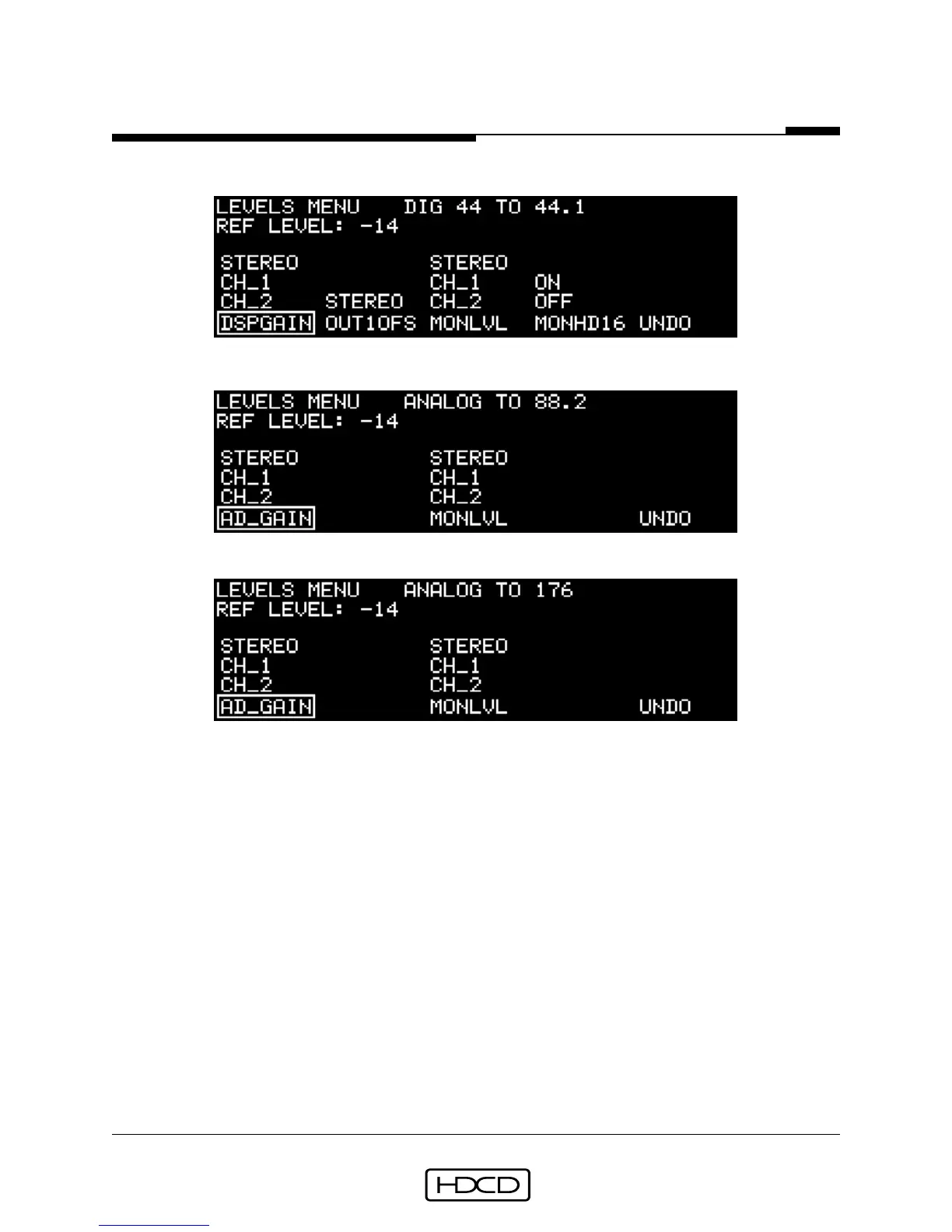(AD_GAIN) in A/D modes, or digital signal level (DSPGAIN) in Digital Input modes. AD_GAIN