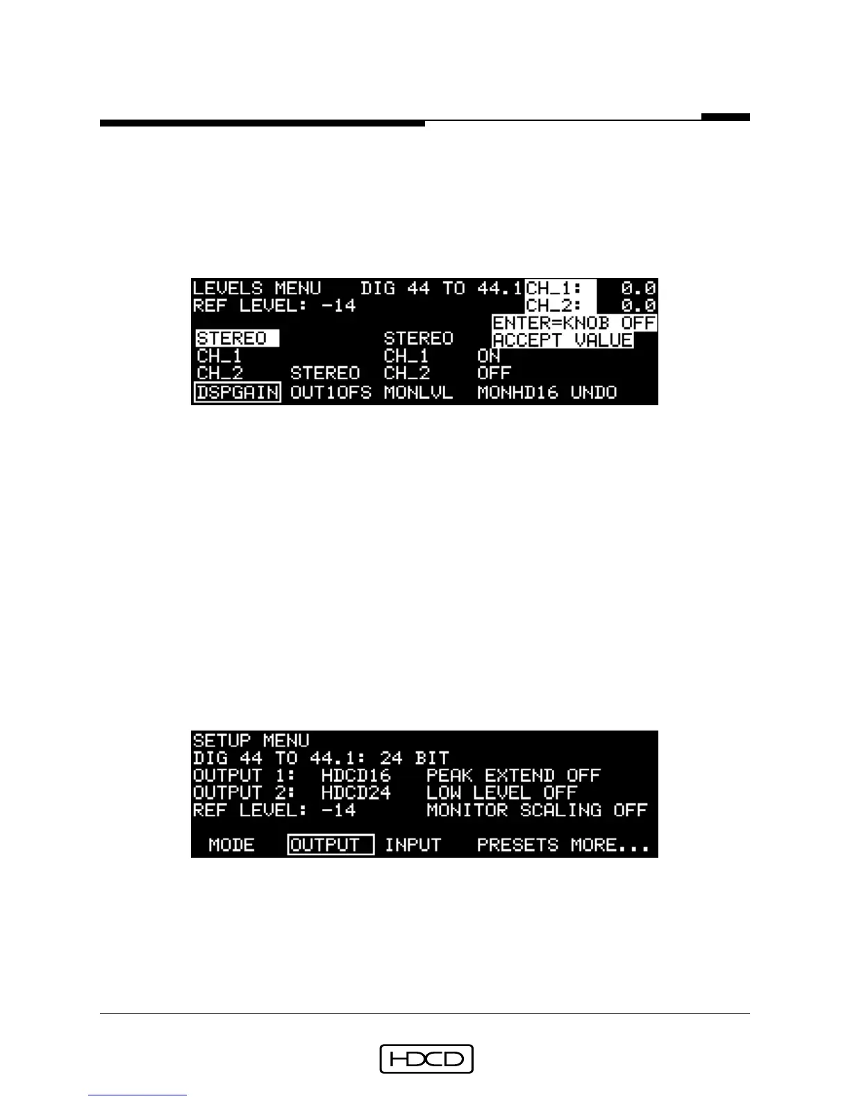 Sample Rate Menu and the Operating Mode Menus, button #2 (OUTPUT) selects the Digital
