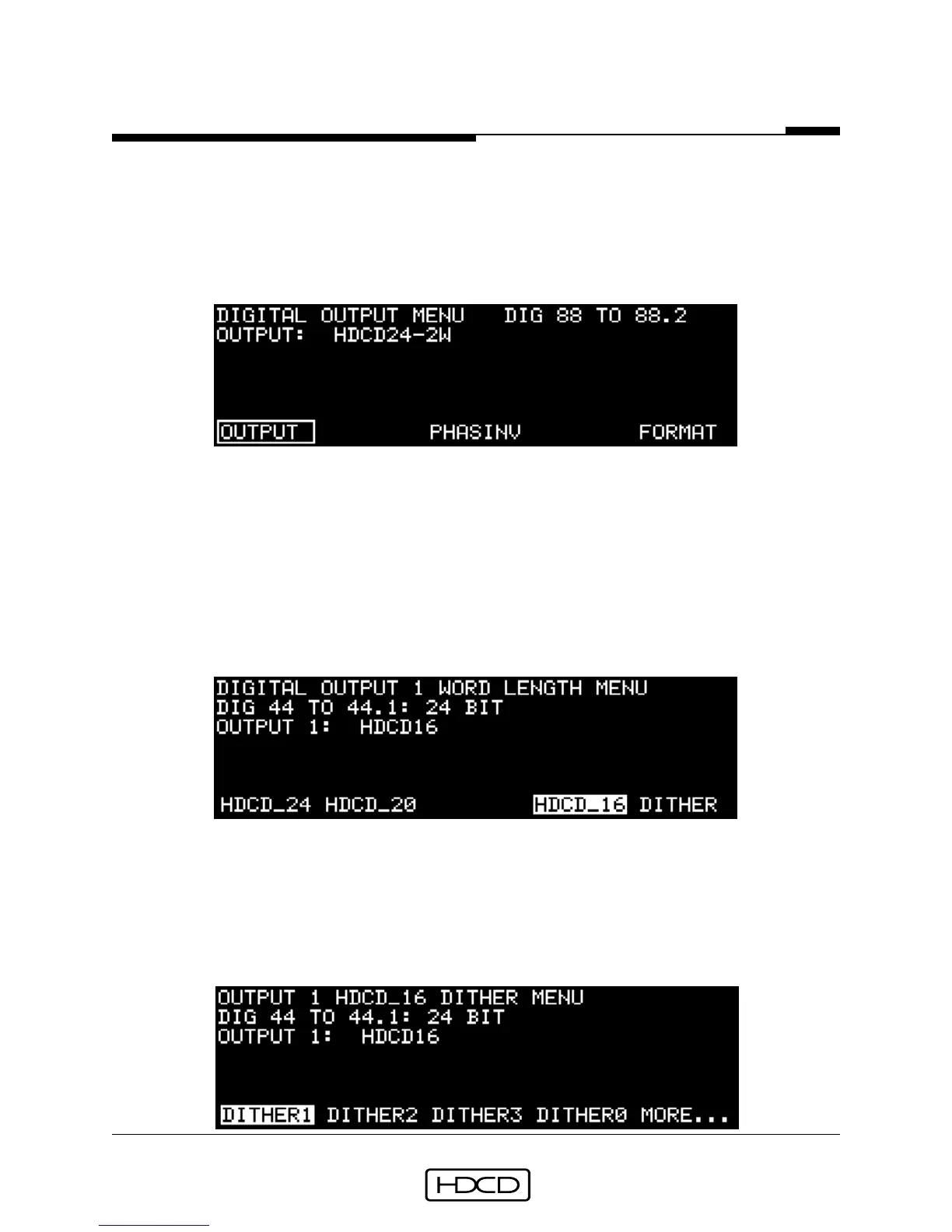 Digital Output Phase Invert Menu, and button #4 (HDCD_16) selects the Digital Output