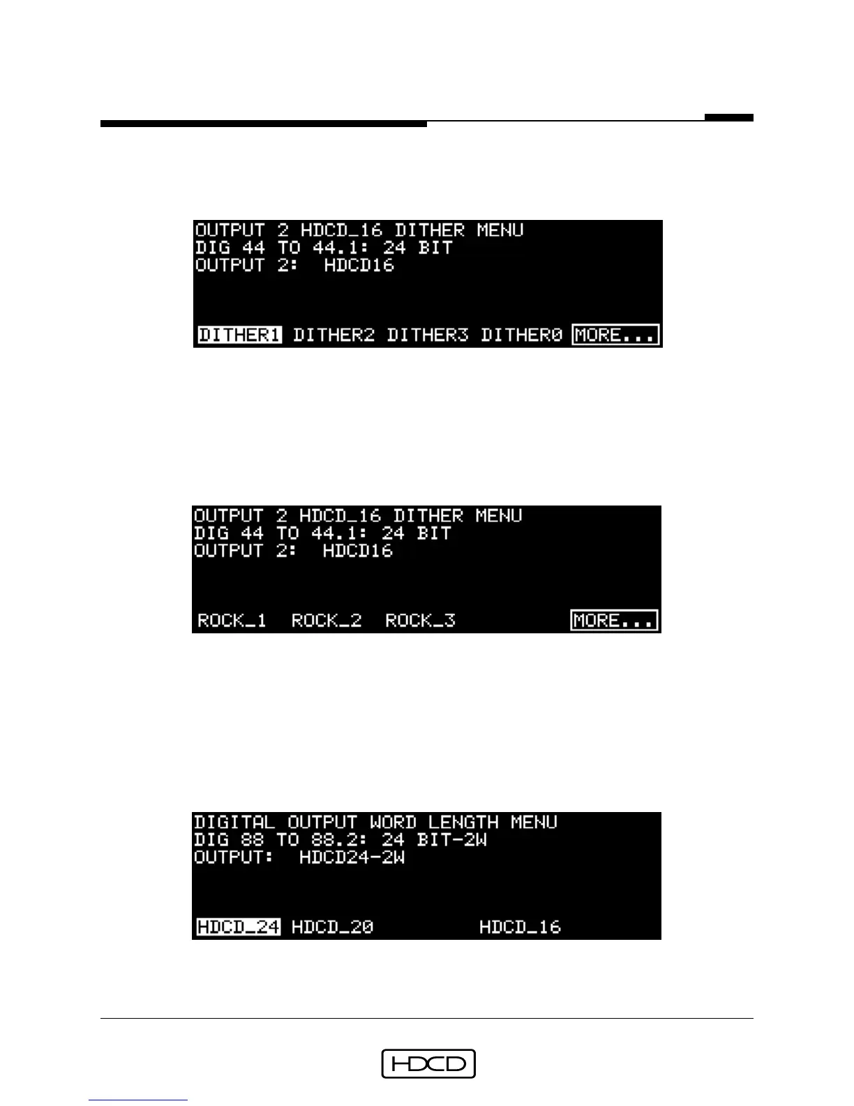 Output 2 HDCD_16 Dither Menu