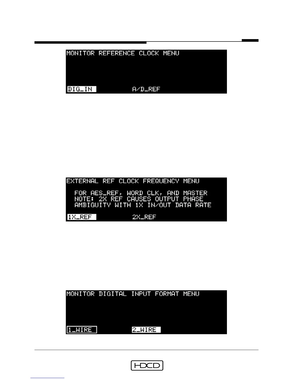 The Monitor Reference Clock Menu is used to select the D/A converter clock source when