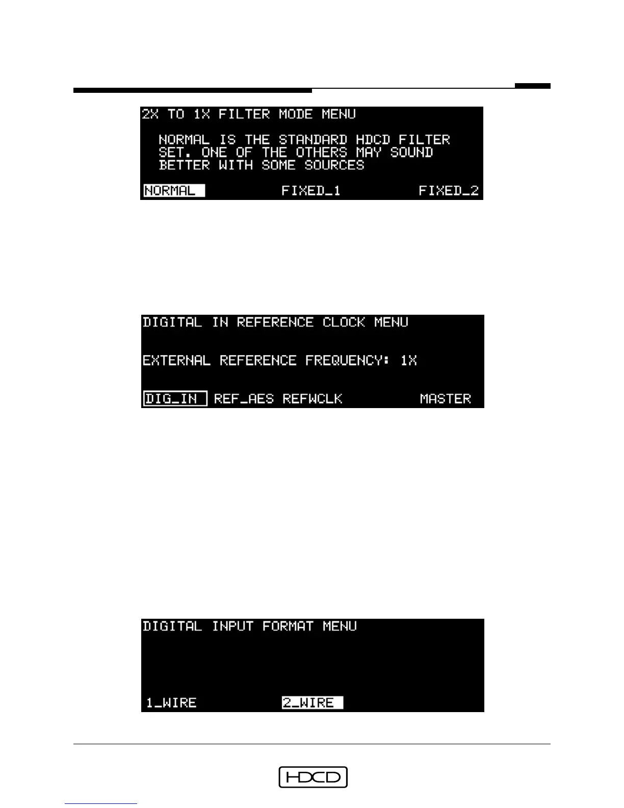 The 2X to 1X Filter Mode Menu provides the same decimation filter choices for 2X digital