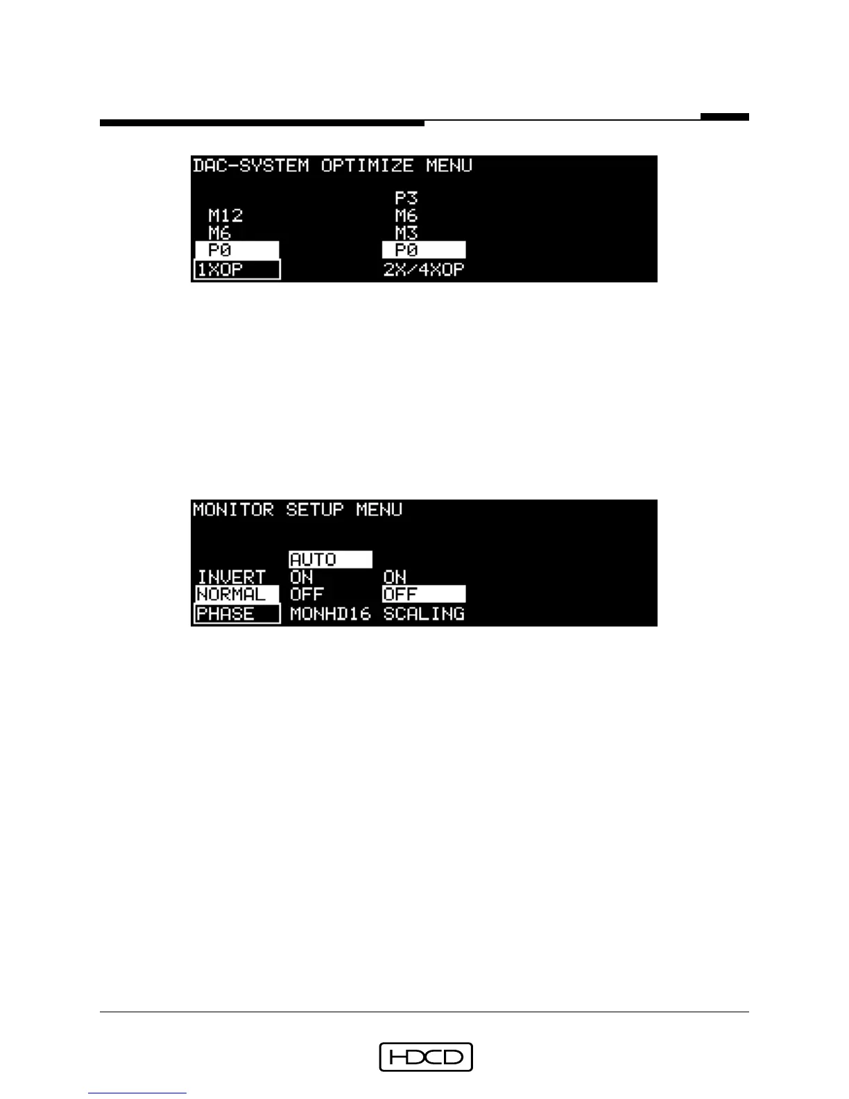 tween normal (NORMAL) and inverted (INVERT), button #2 (MONHD16) toggles HDCD 16-
