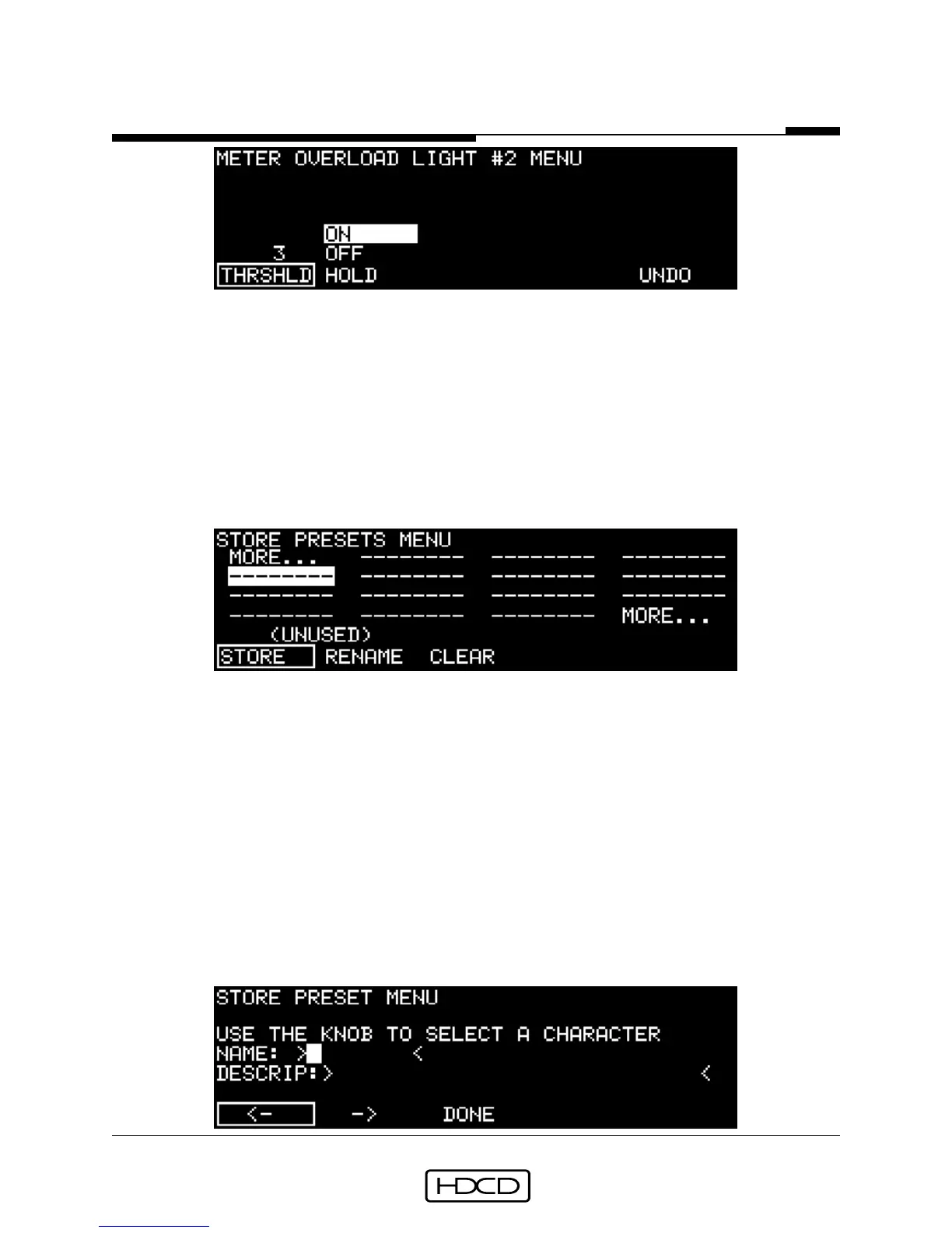 The Meter Overload Light #2 Menu is the same as the Meter Overload Light #1 Menu except