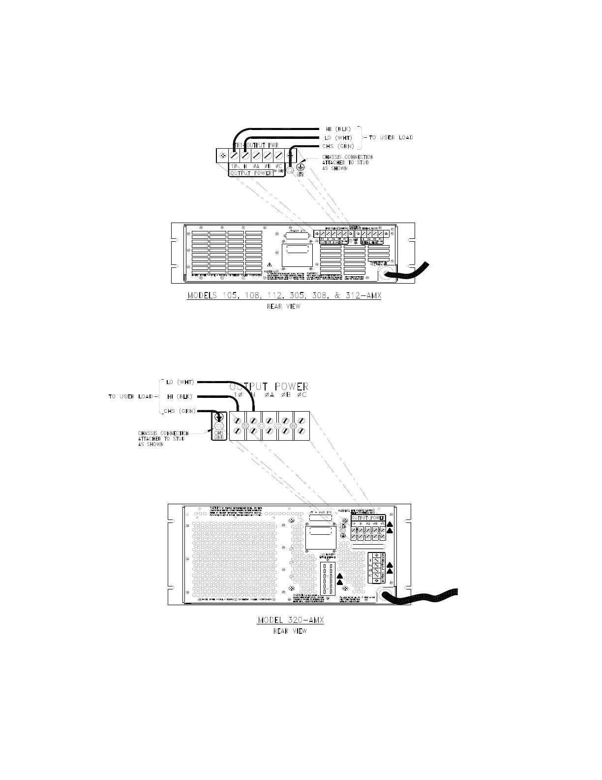 Pacific Power Source 312-AMX - Figure 3.4.1.1 Models 125;140;345;360;390;3210-Amx Single Phase Output Connection