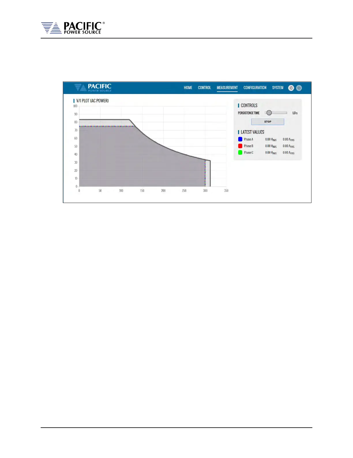 The V/I plot shows the power operating point at any moment in time by plotting measured