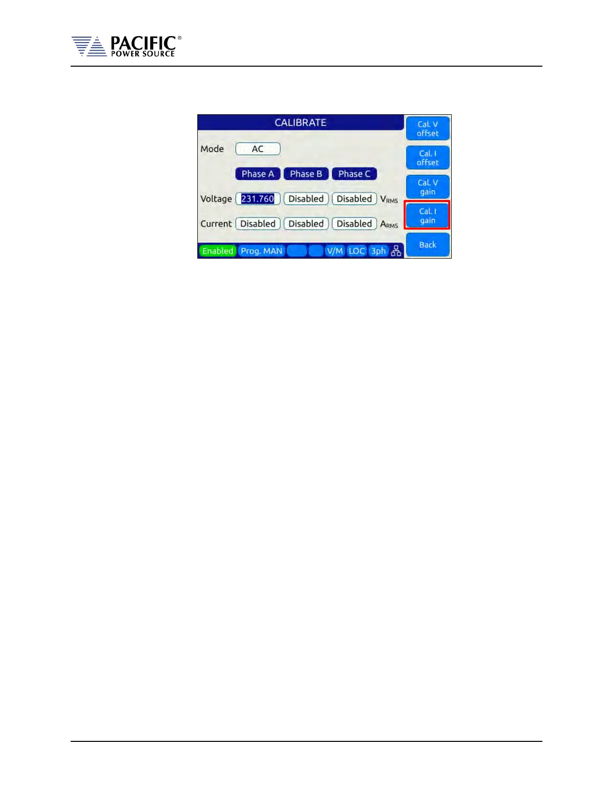 9. Press "Cal I. gain" soft key