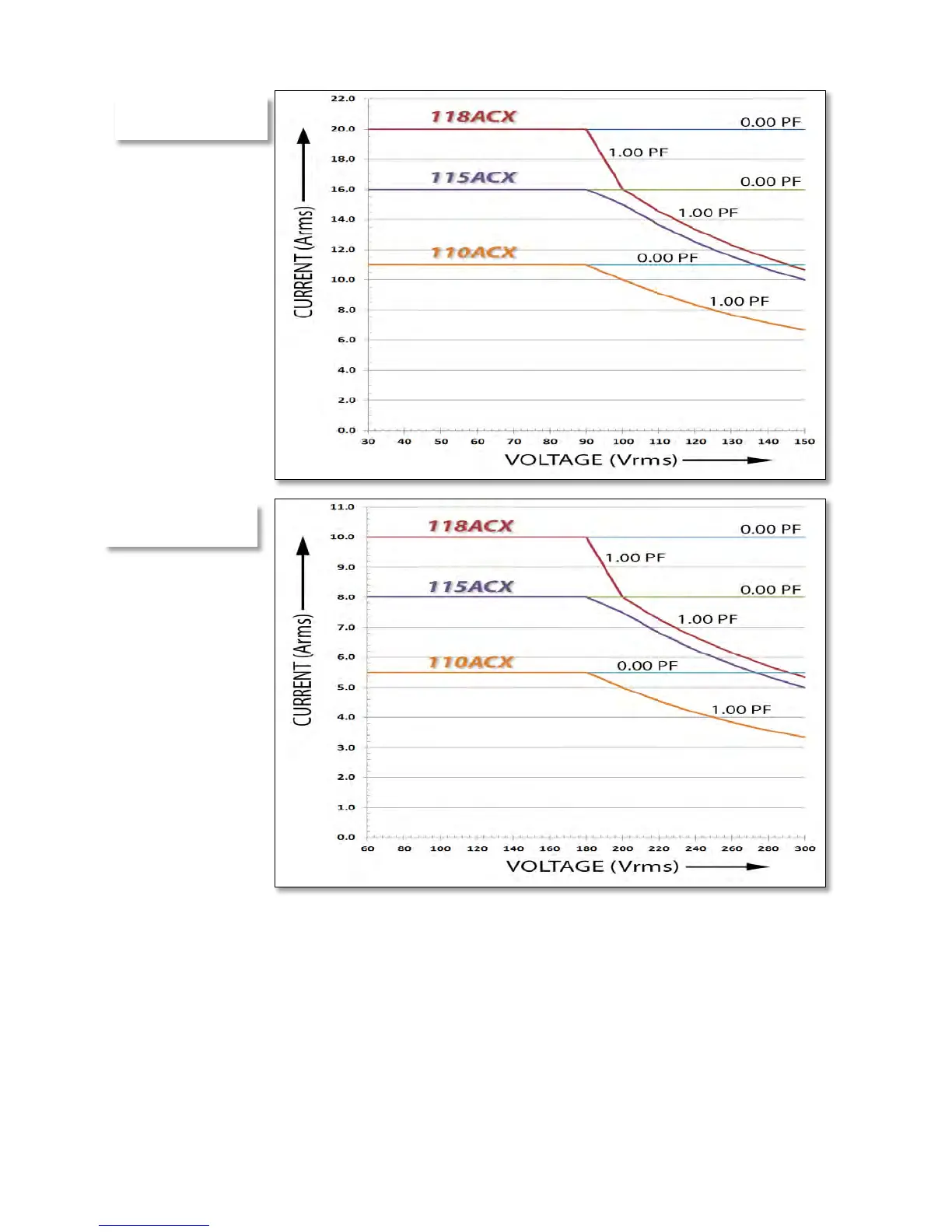 Rated continuous load current as a function of Power Factor and Output Voltage Nominal Input Line.
