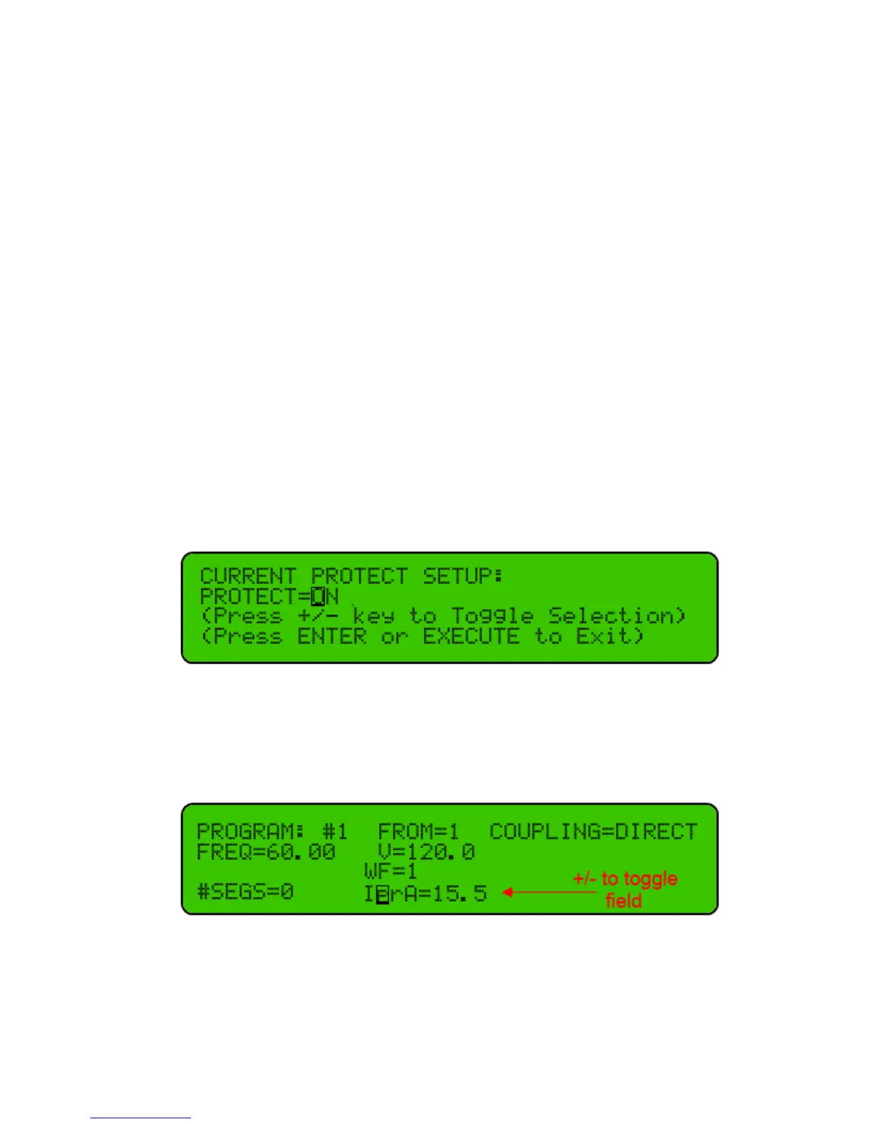 enabled by the user. It can be toggled ON or OFF from the CURRENT PROTECT MENU which is