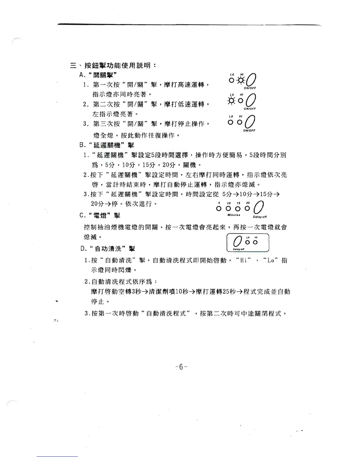Pacific AC-3100 - Button Function Usage; On;Off Button Operation; Delay Off Button Operation; Lamp Button Operation