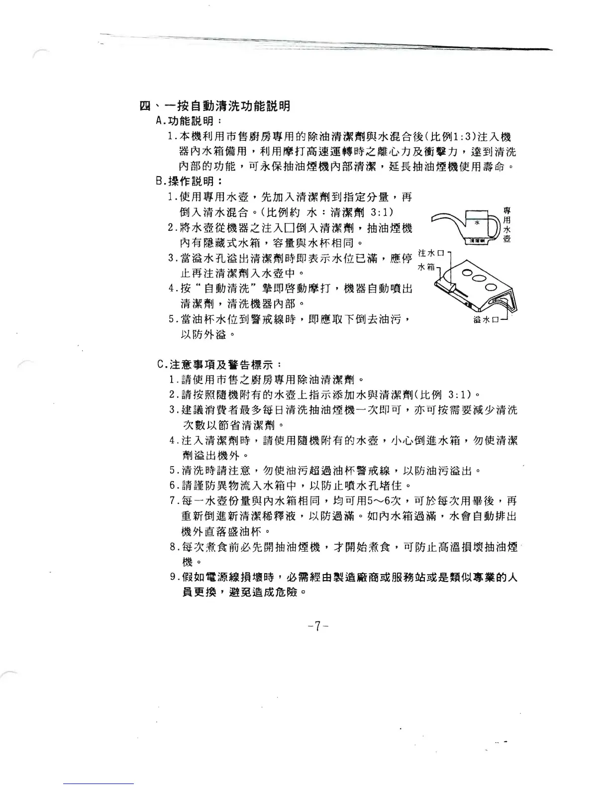 Pacific AC-3100 - One-Touch Automatic Cleaning Function; Function Description; Operation Instructions; Precautions and Warnings
