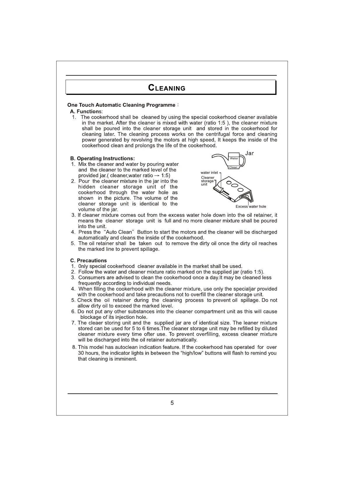 Pacific AC3336 - CLEANING; One Touch Auto Cleaning Process; Auto Clean Operating Instructions; Cleaning Precautions and Tips