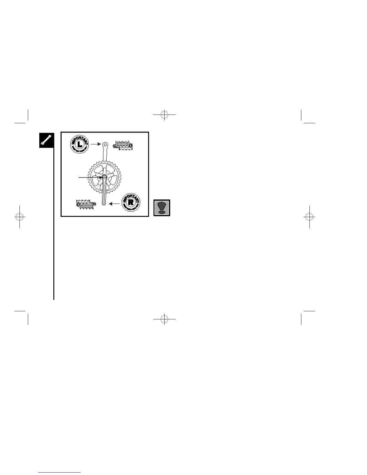 (clockwise) thread. The left pedal attaches to the other crank arm and has