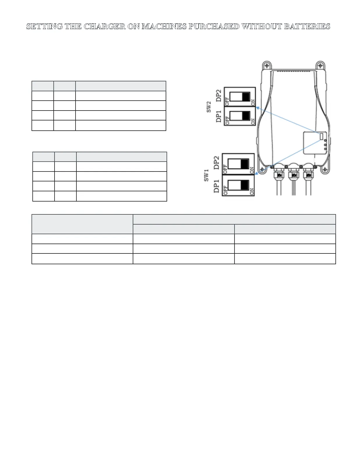 SETTING THE CHARGER ON MACHINES PURCHASED WITHOUT BATTERIES