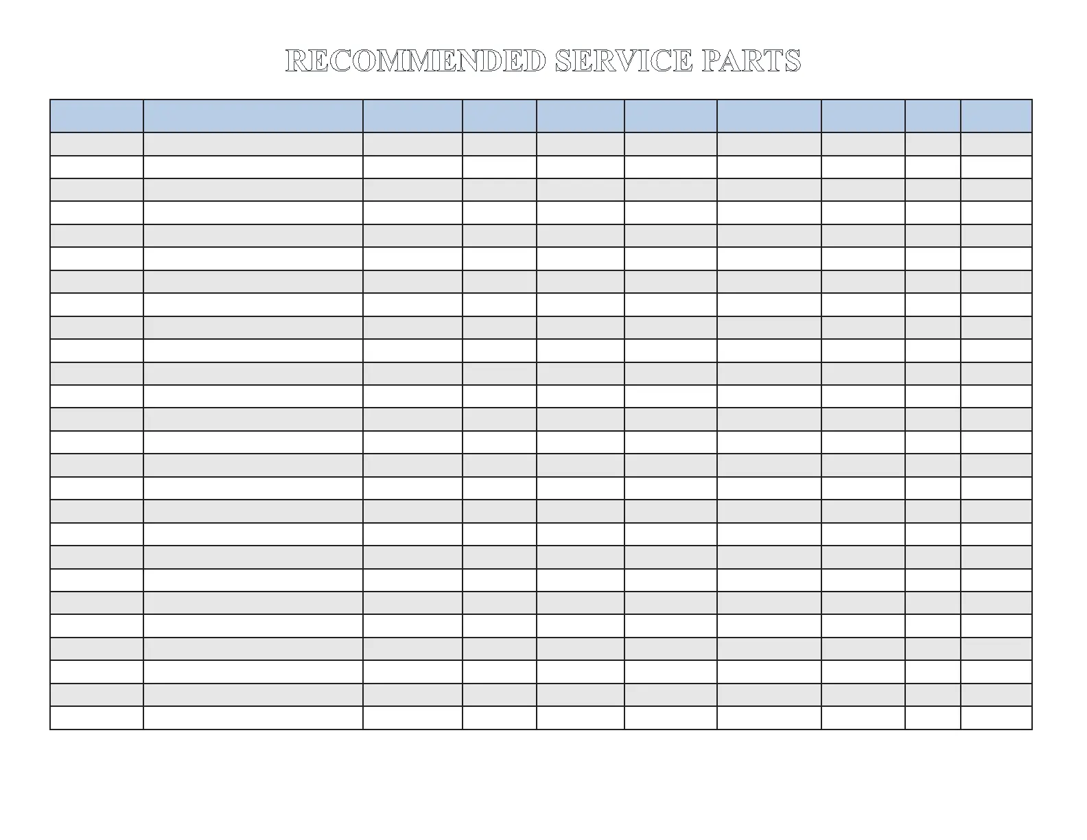 RECOMMENDED SERVICE PARTS