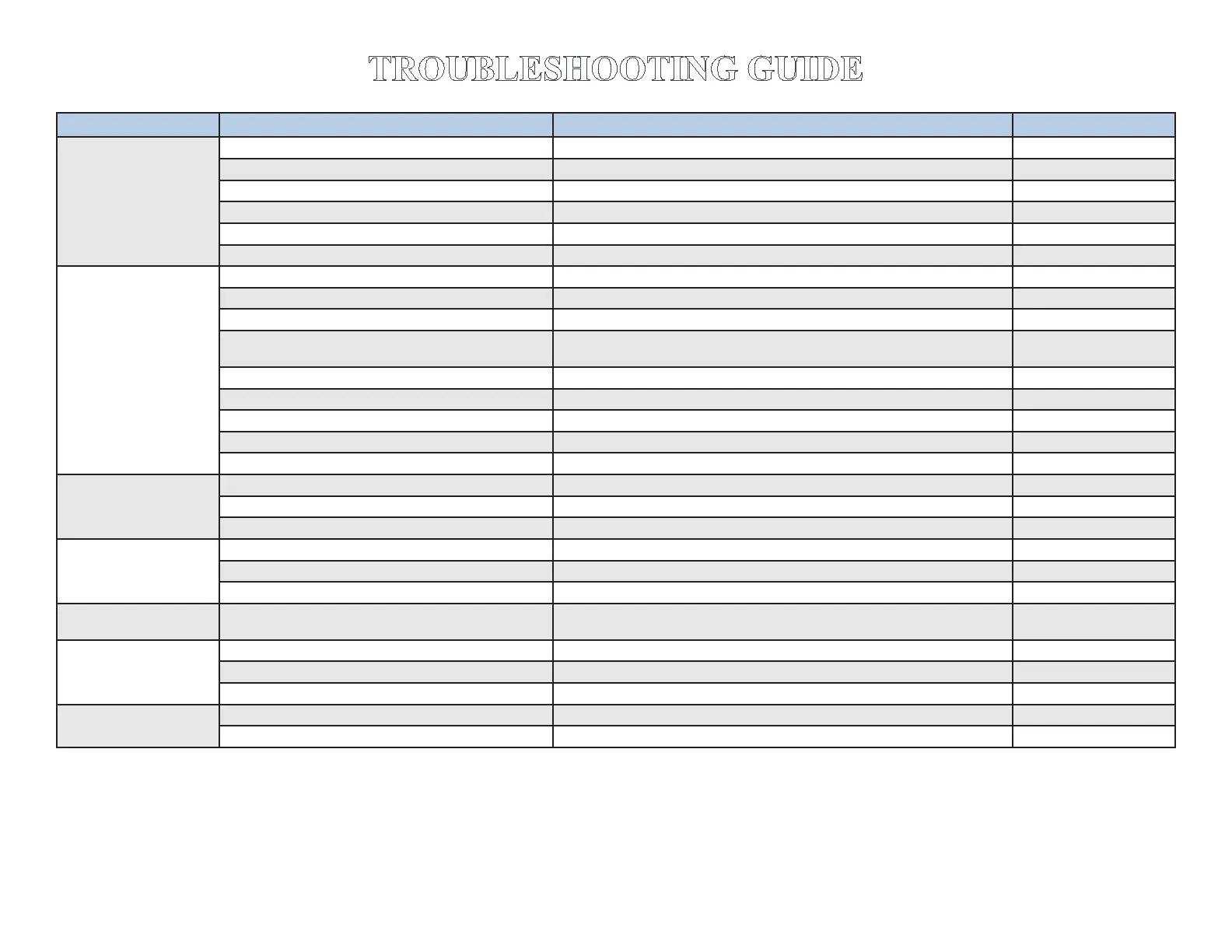 TROUBLESHOOTING GUIDE