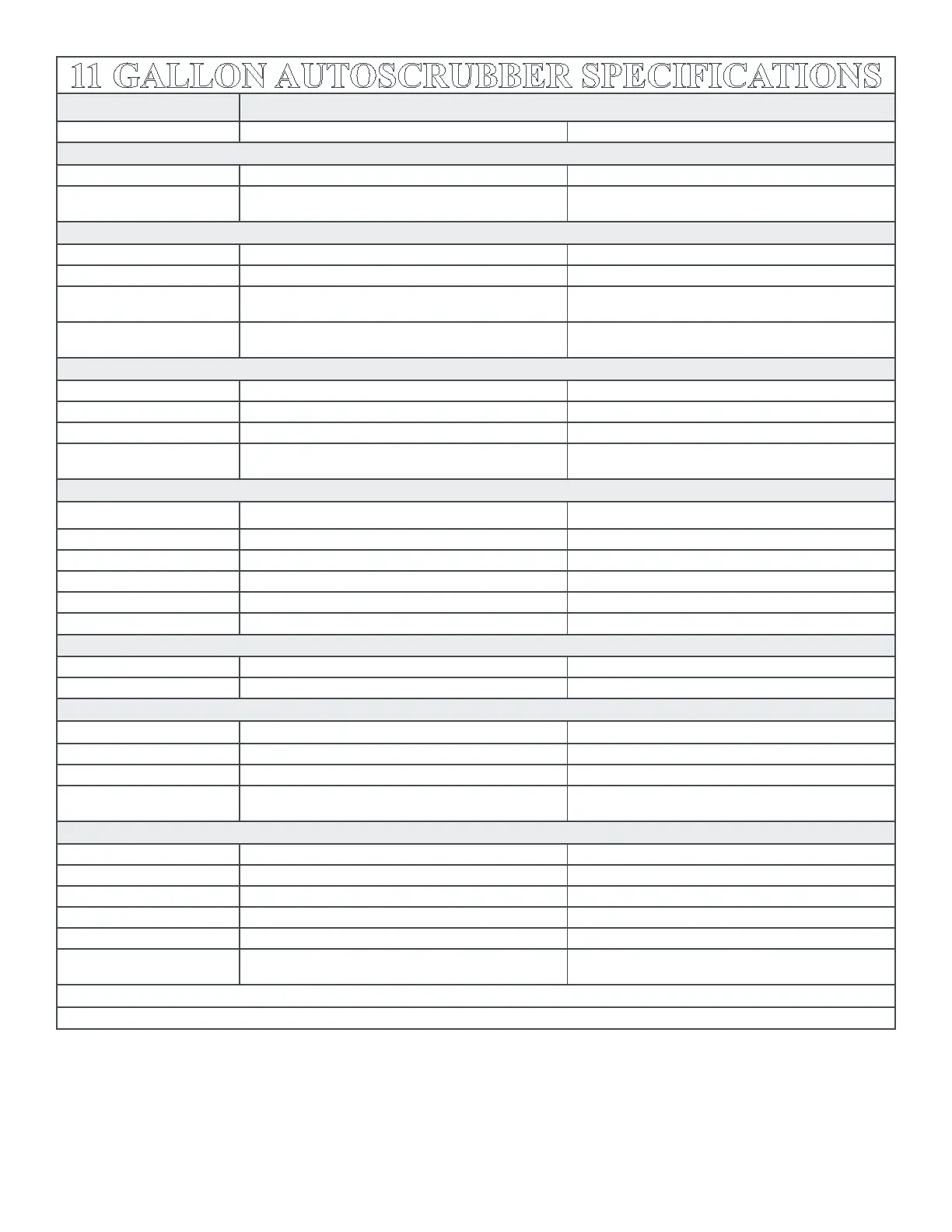 11 GALLON AUTOSCRUBBER SPECIFICATIONS
