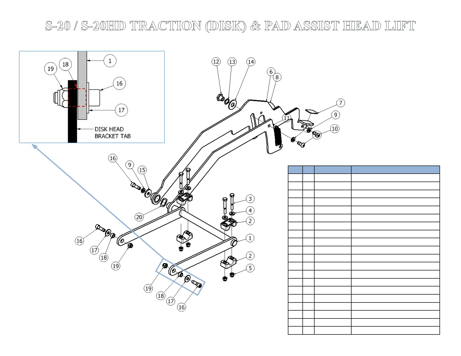 S-20 / S-20HD TRACTION (DISK) & PAD ASSIST HEAD LIFT