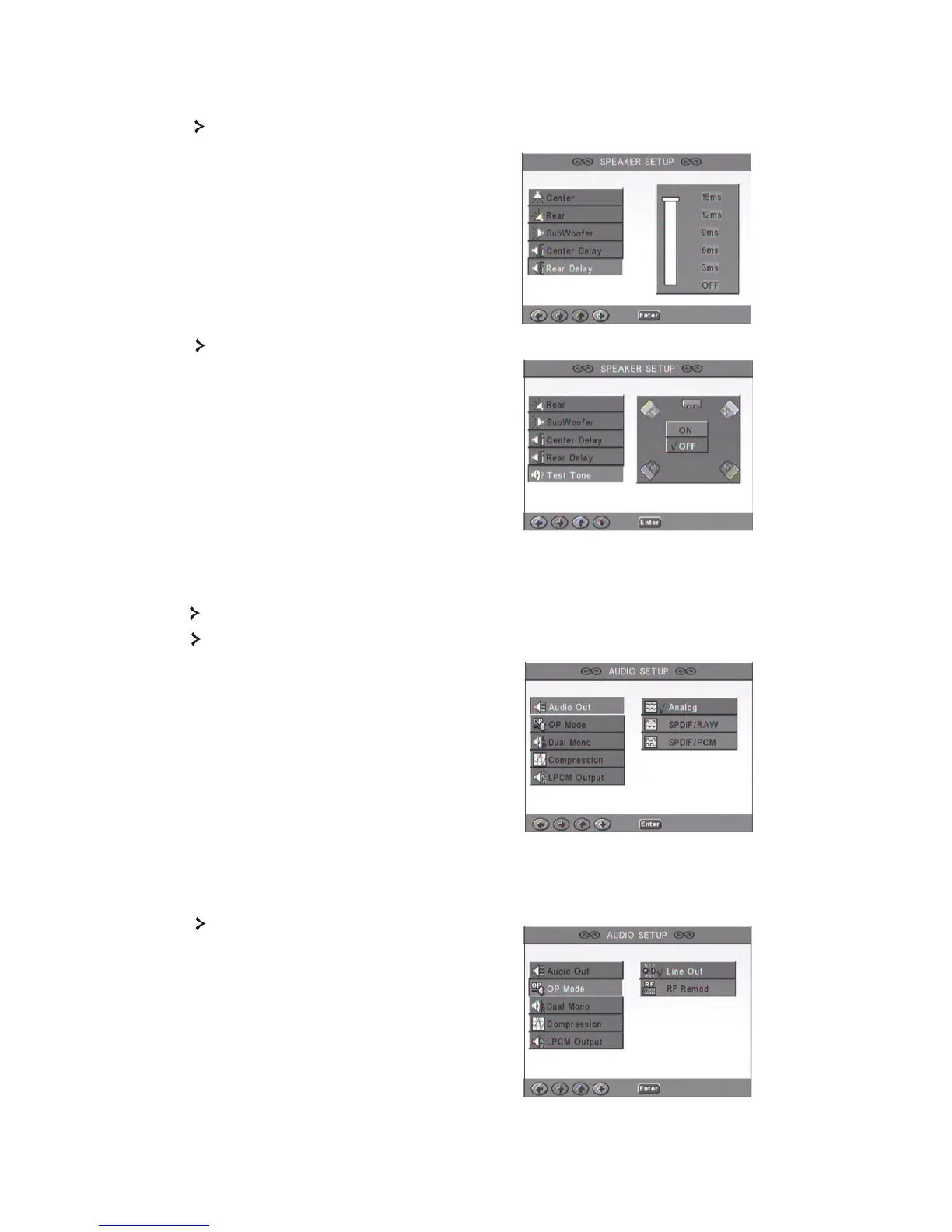 Allows delaying rear speaker output.