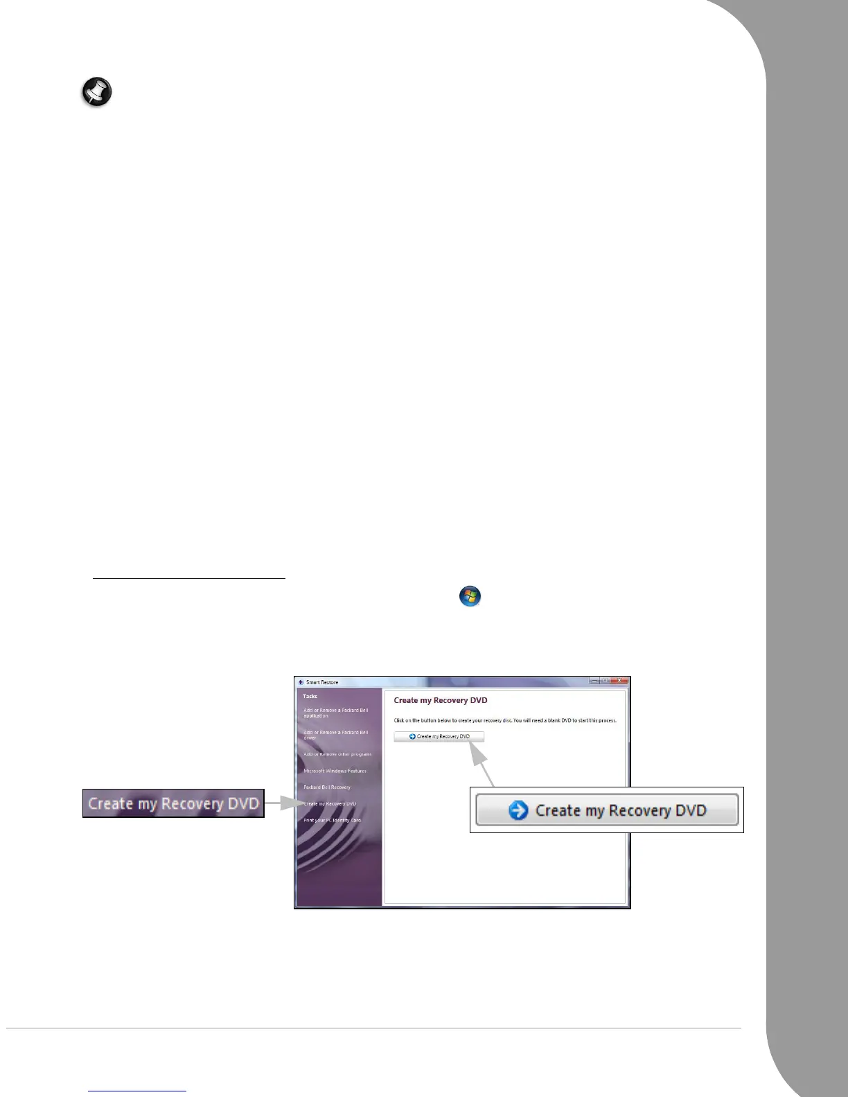 ✓ The Recovery DVDs that you create will only contain the software that was originally on the hard disk of