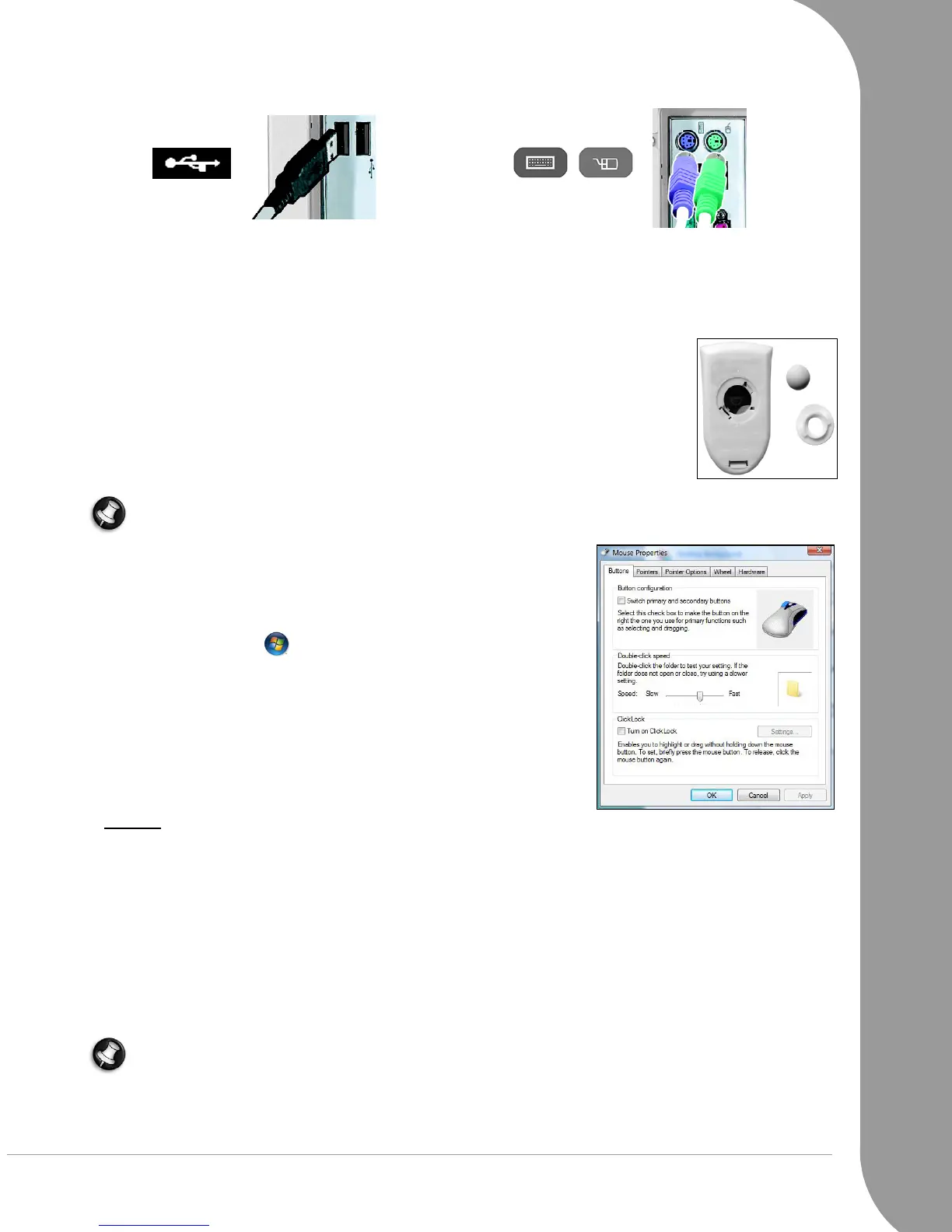 Note: Optical mice do not have a track ball and do not get as dirty as regular mice since they do not