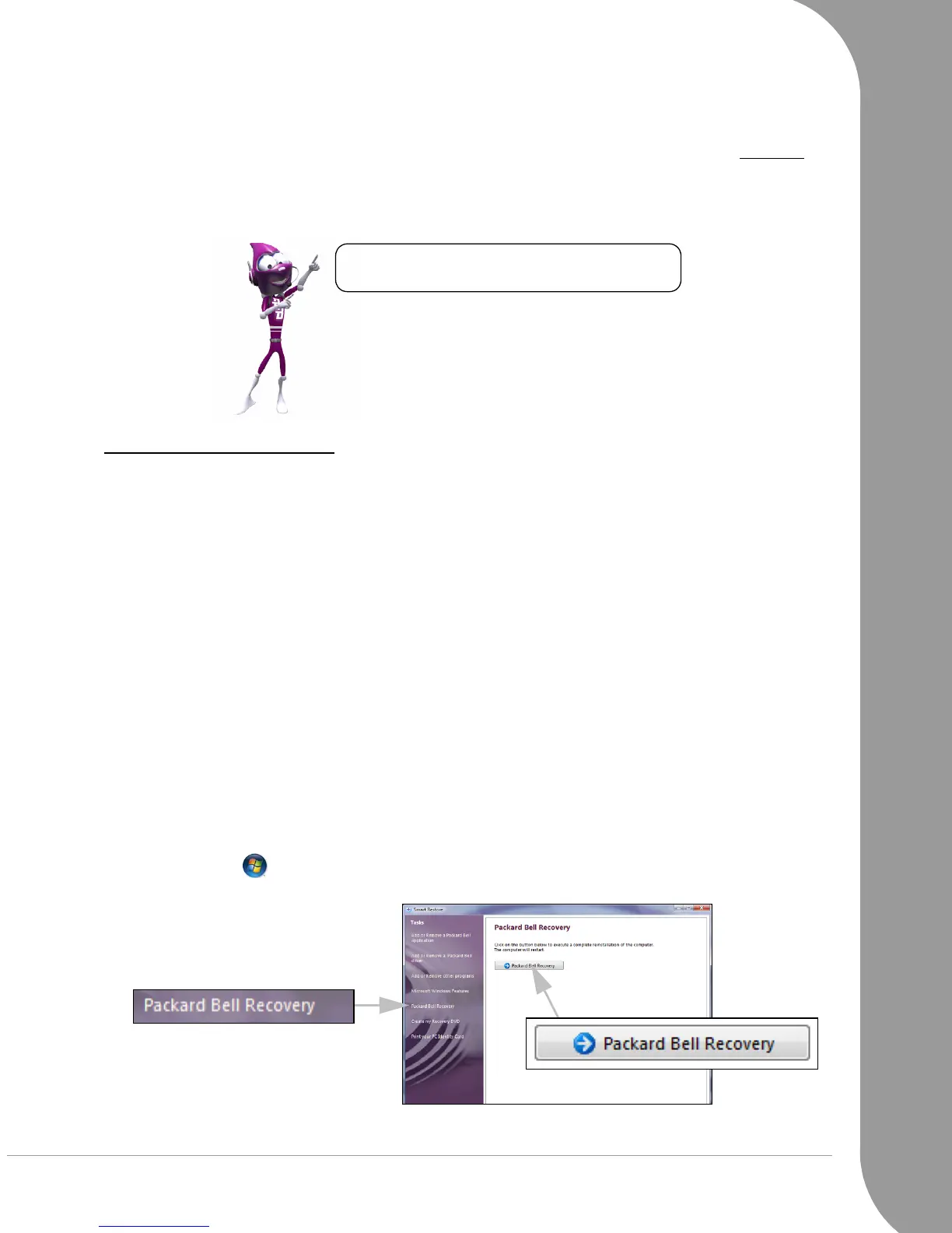 , then click on the Packard Bell Recovery button.